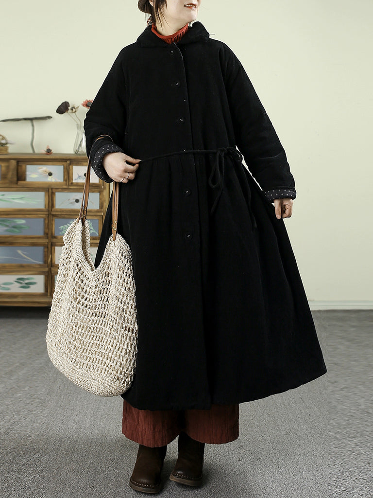 Tento kabát je vyroben z bavlny, má jednobarevný design a kapuci pro větší teplo. Má raglánové rukávy po celé délce s vintage stylem, takže je ideální na podzimní a zimní nošení.