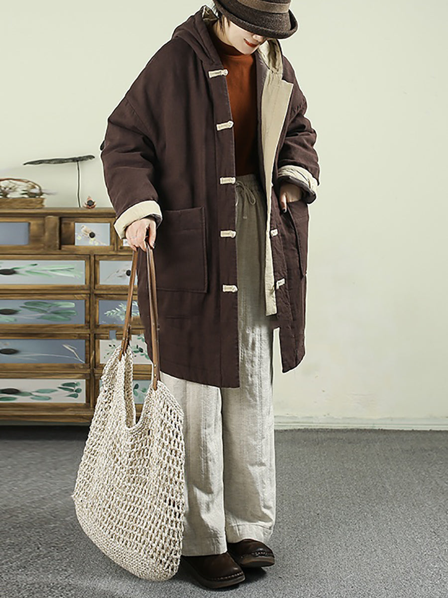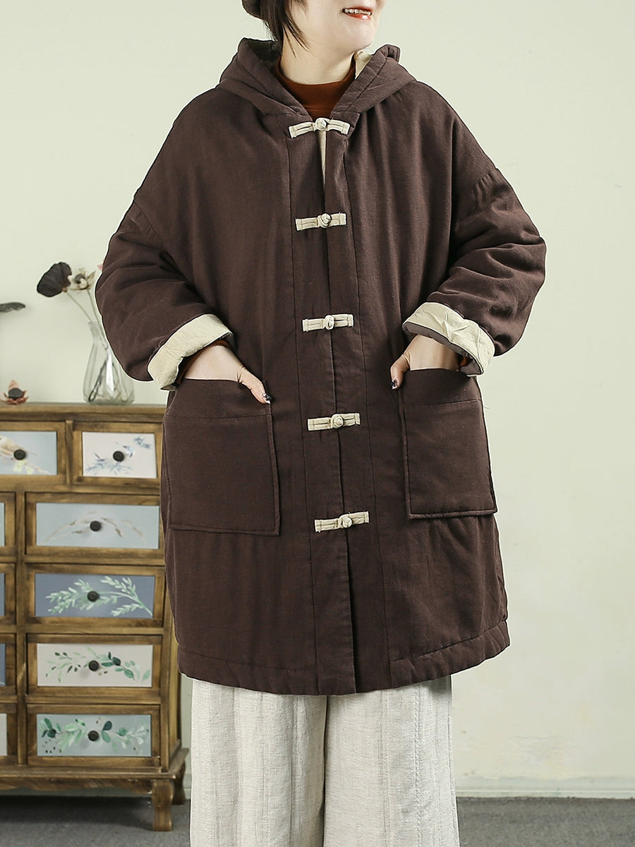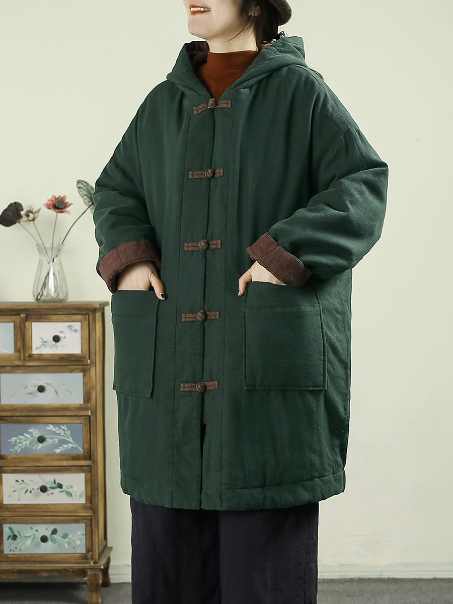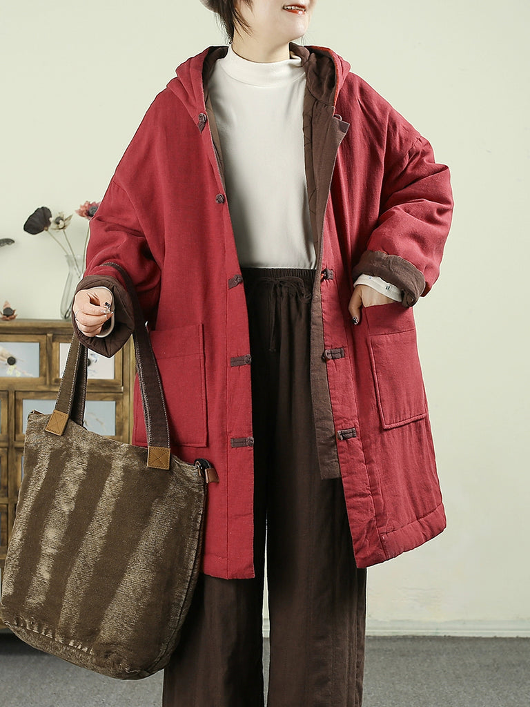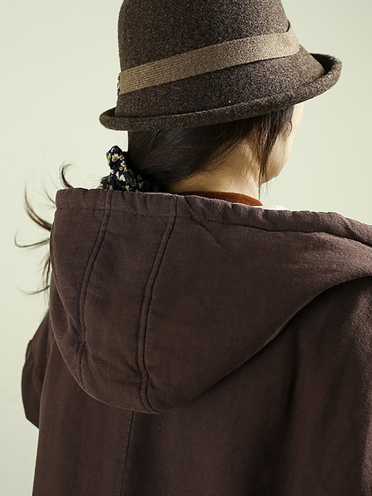 Dámský zimní kabát s kapucí v čistých barvách, 100% lněný prošívaný