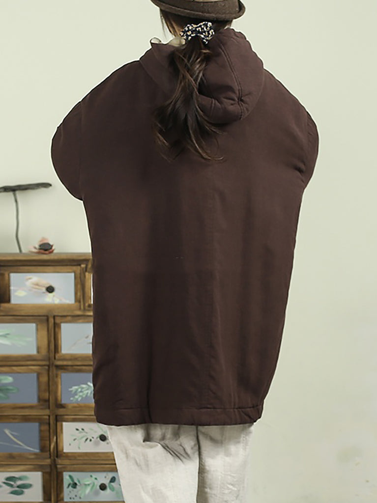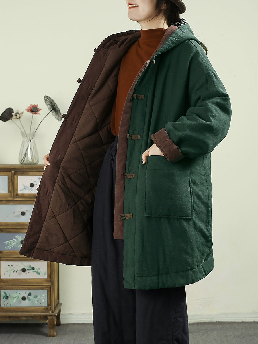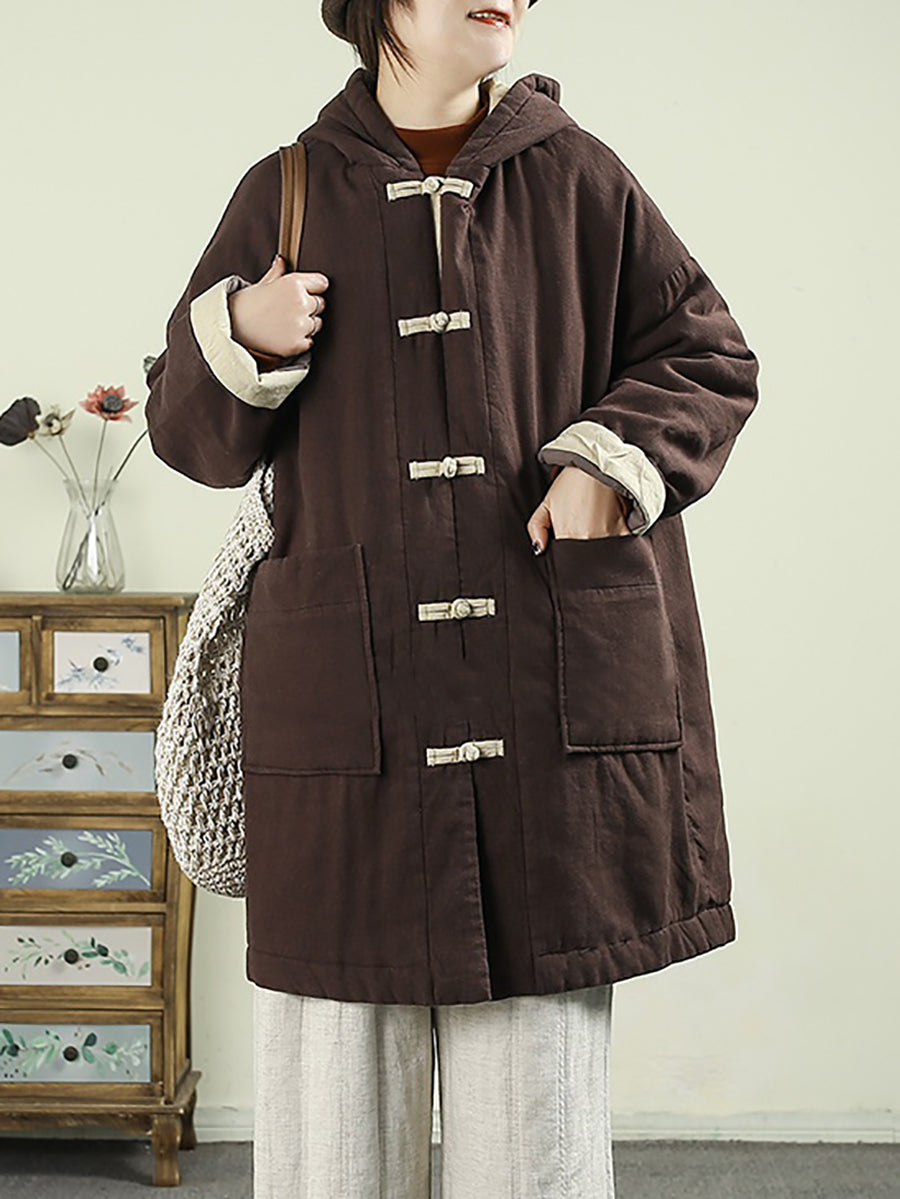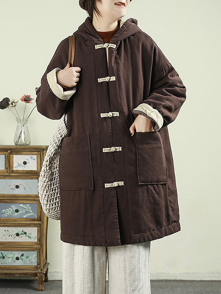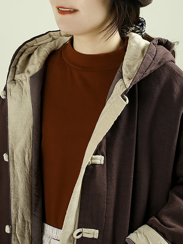 Dámský zimní kabát s kapucí v čistých barvách, 100% lněný prošívaný