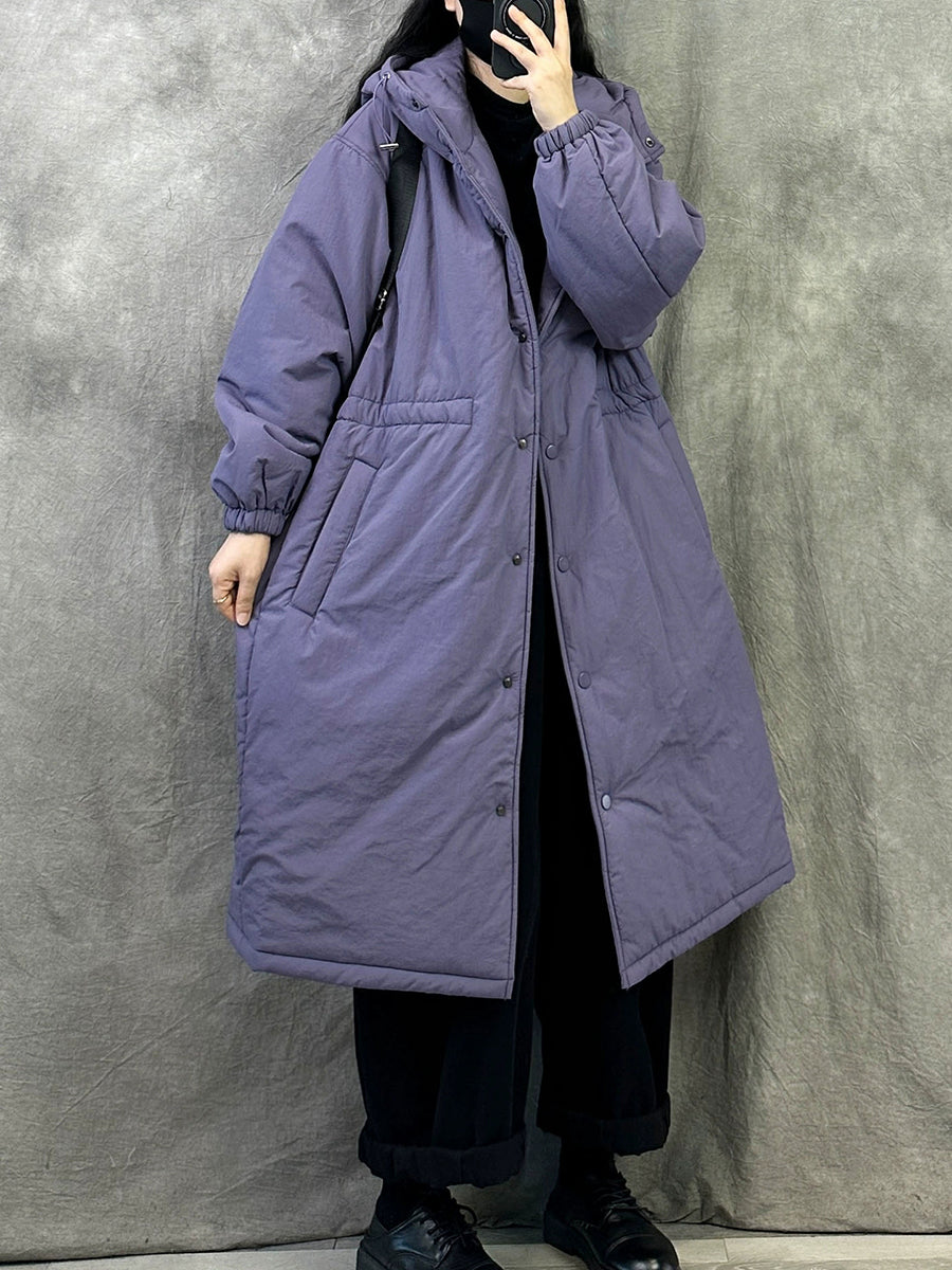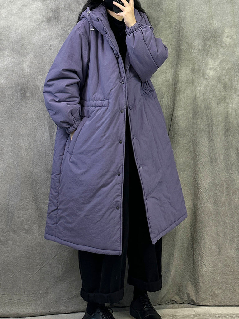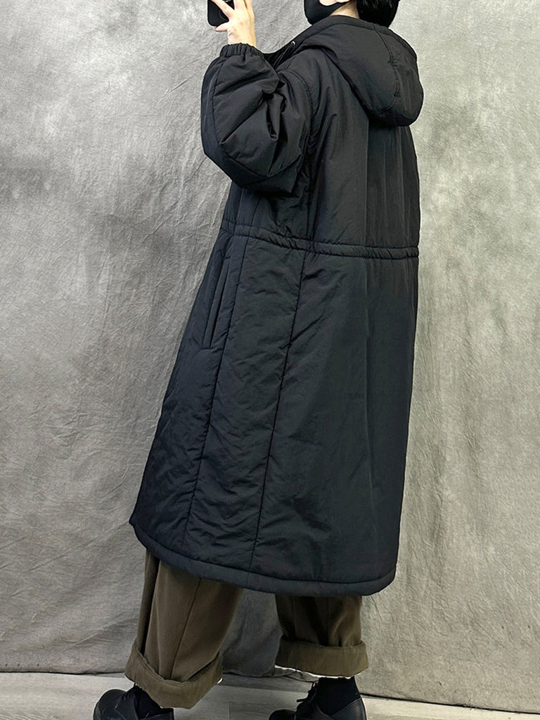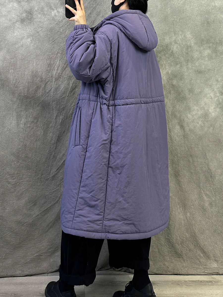 Dámský zimní čistě barevný prošívaný kabát s kapucí