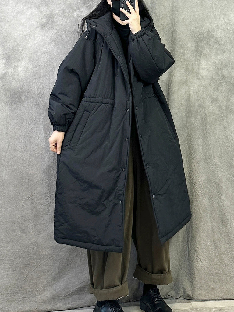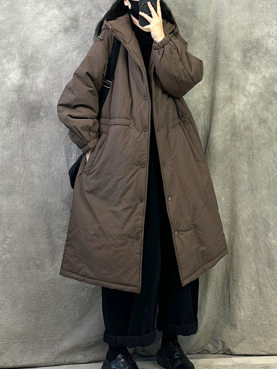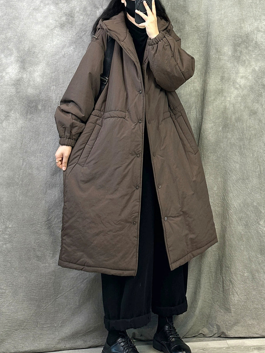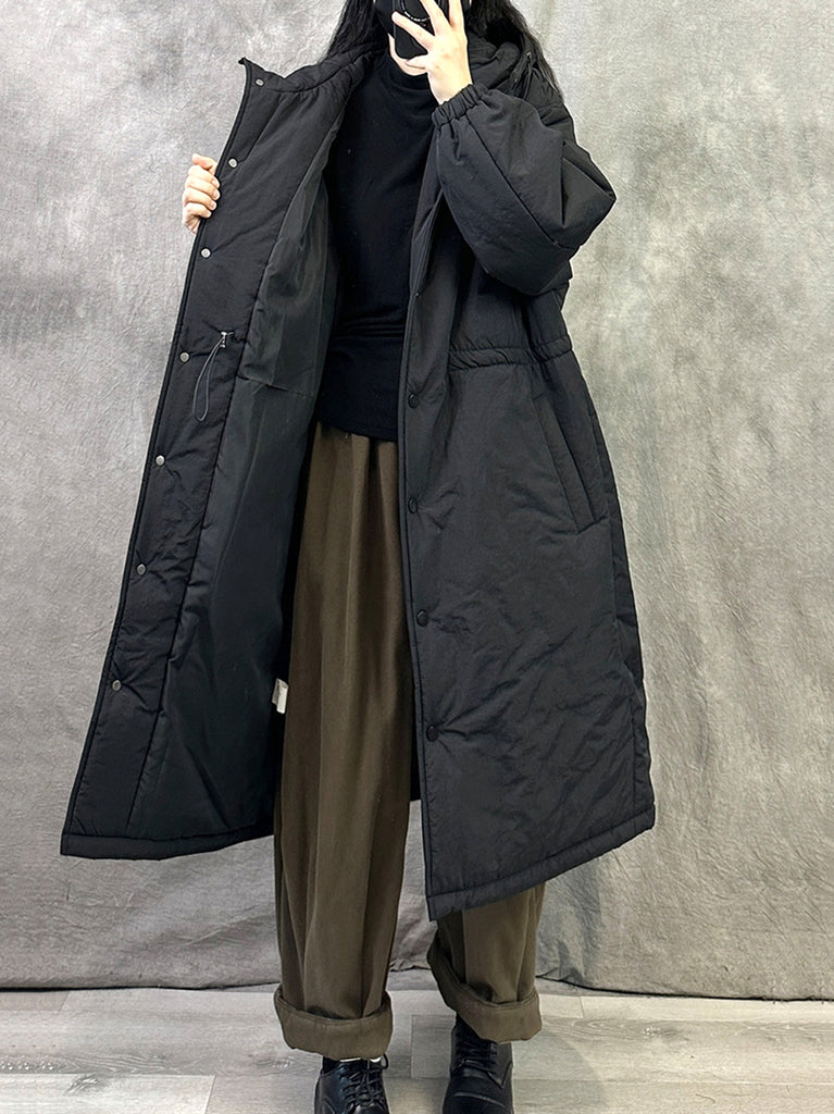 Dámský zimní čistě barevný prošívaný kabát s kapucí