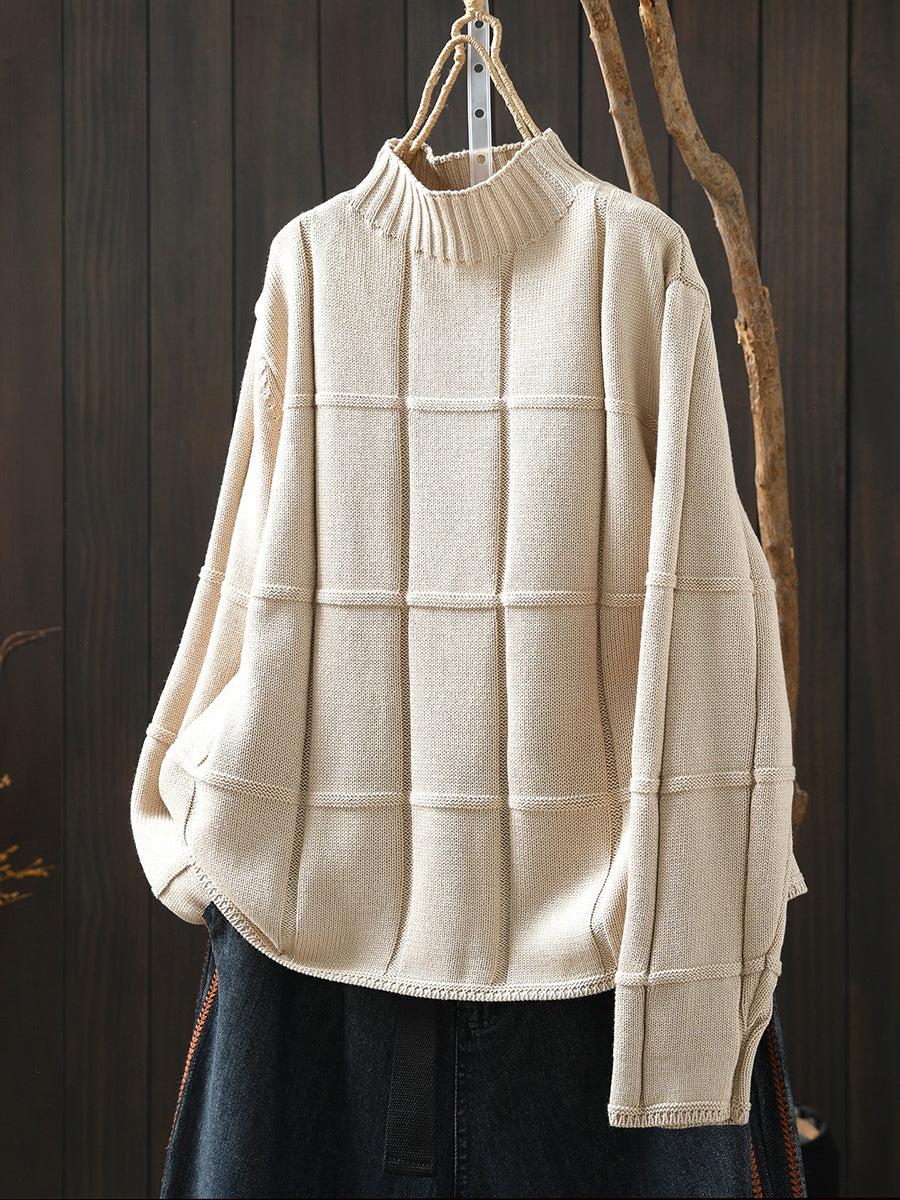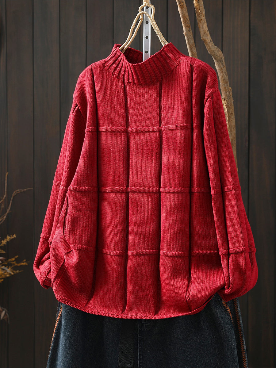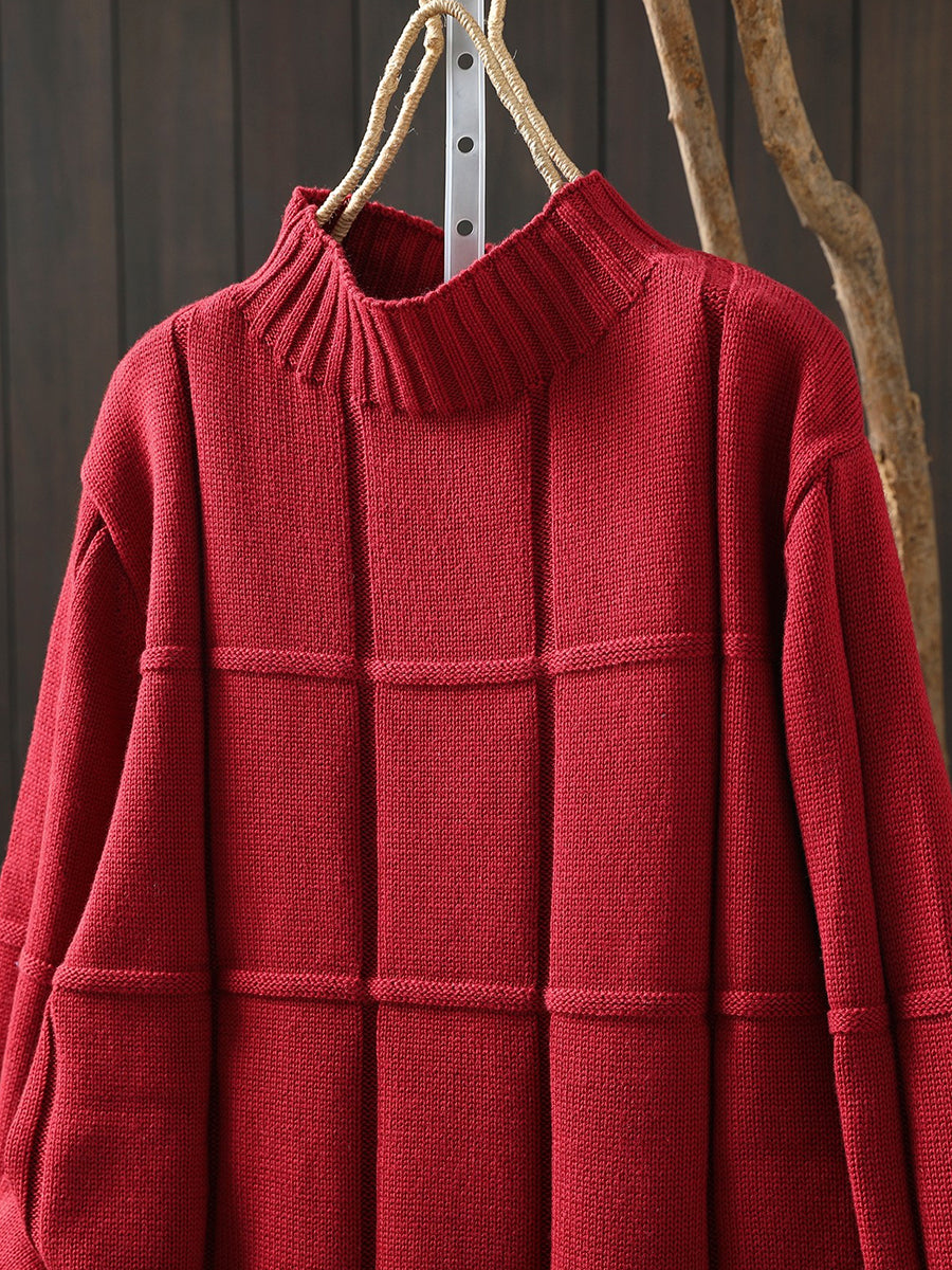 Dámský zimní pletený svetr s půlrolátkem v čistě barevných barvách
