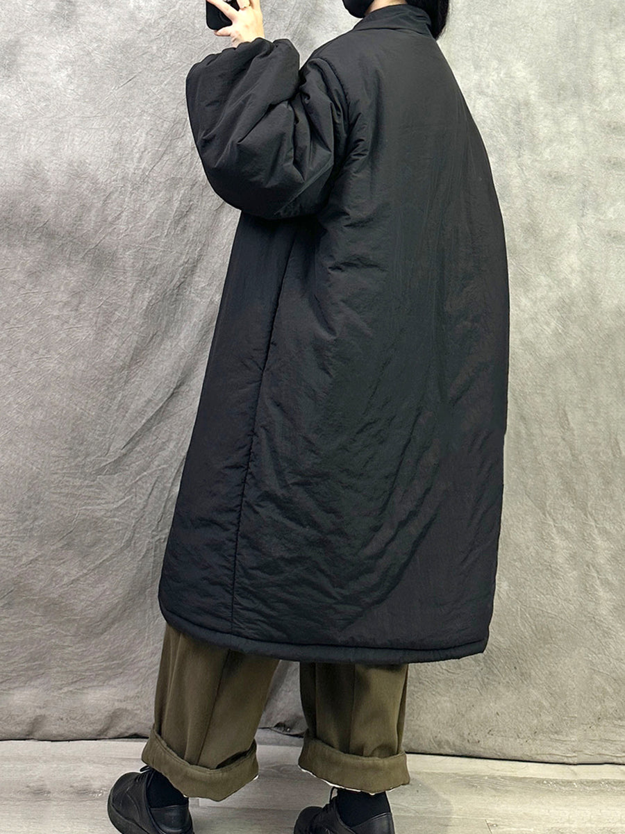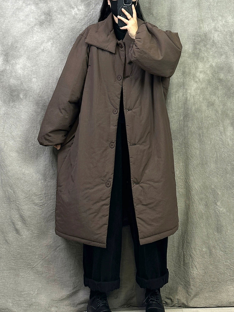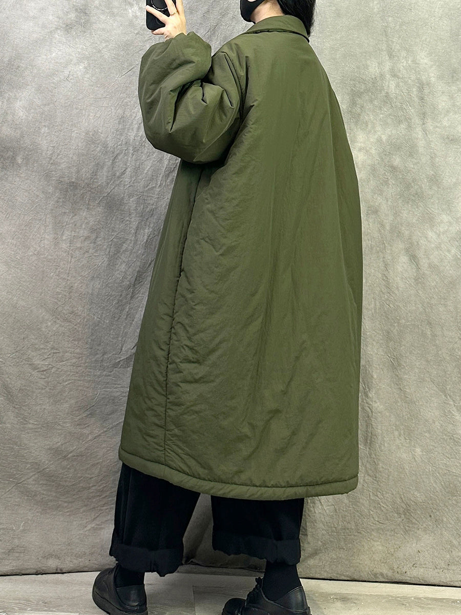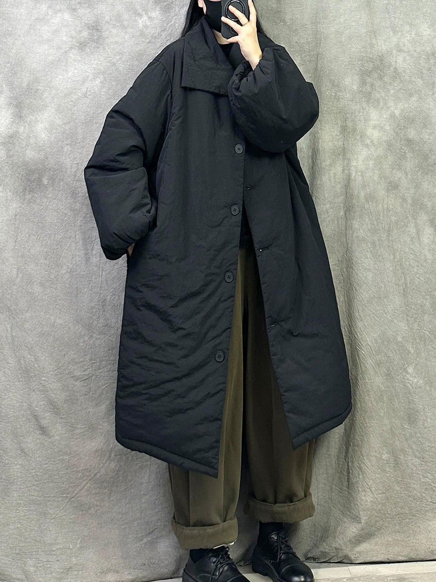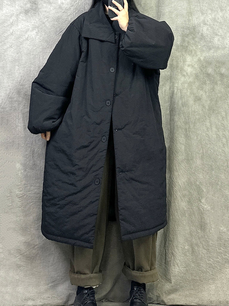 Dámský zimní čistě barevný dlouhý prošívaný kabát s odkládacím límcem