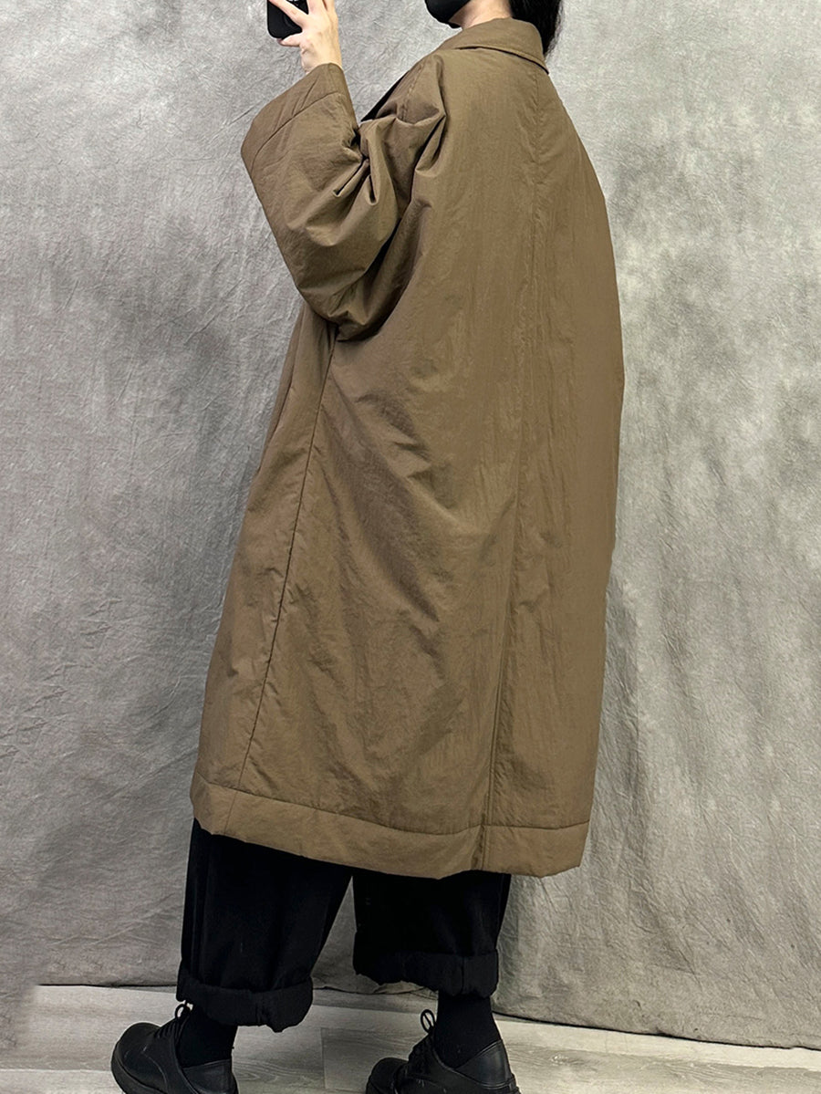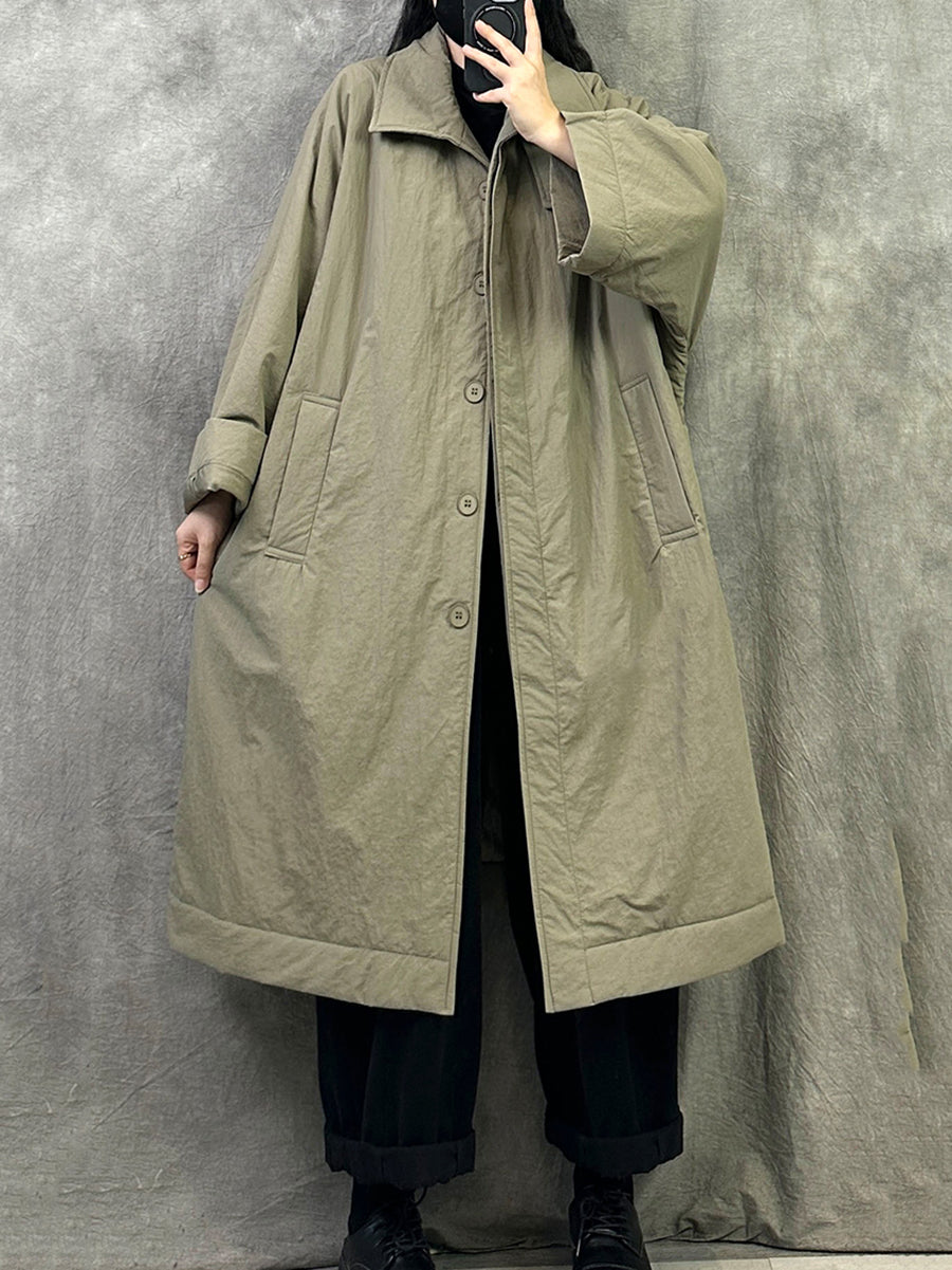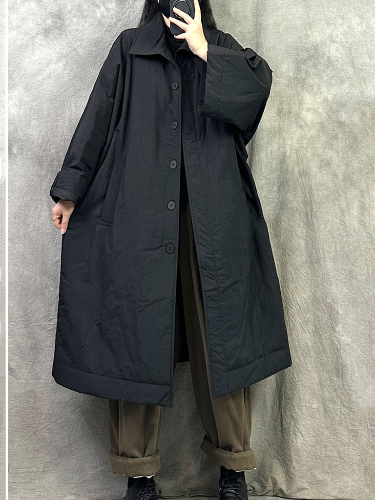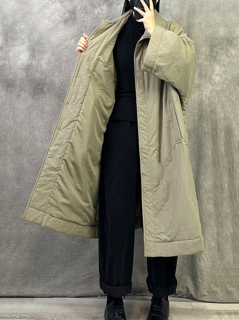 Dámský zimní čistě barevný kabát s odkládacím límcem a polstrovaným límcem