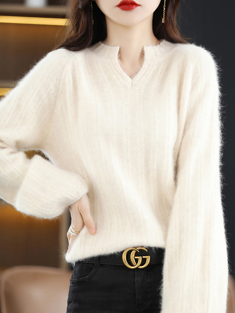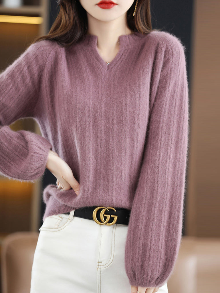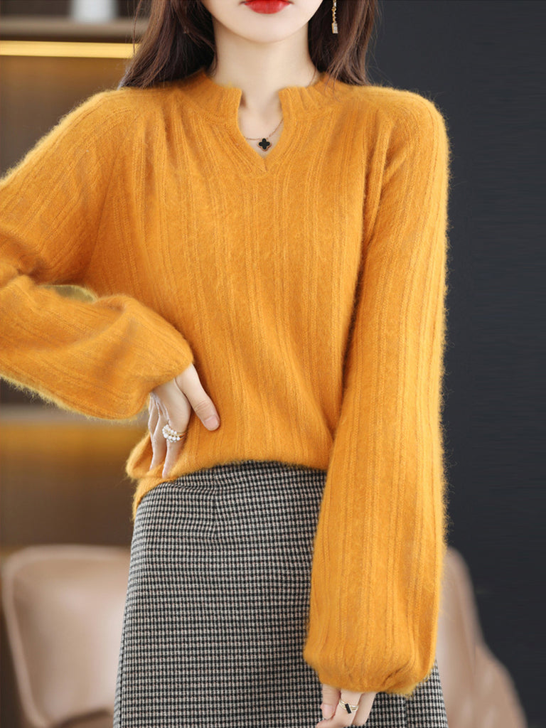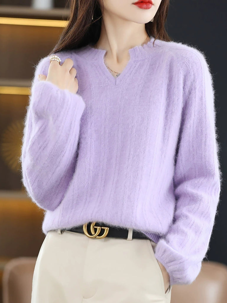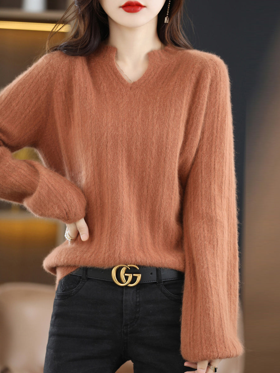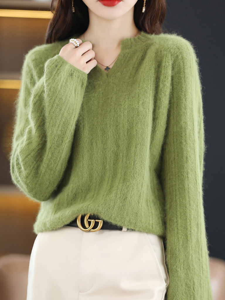 Dámský zimní svetr s výstřihem do V v čistých barvách