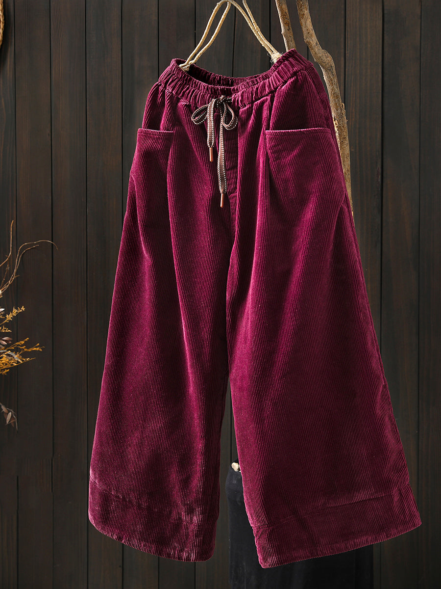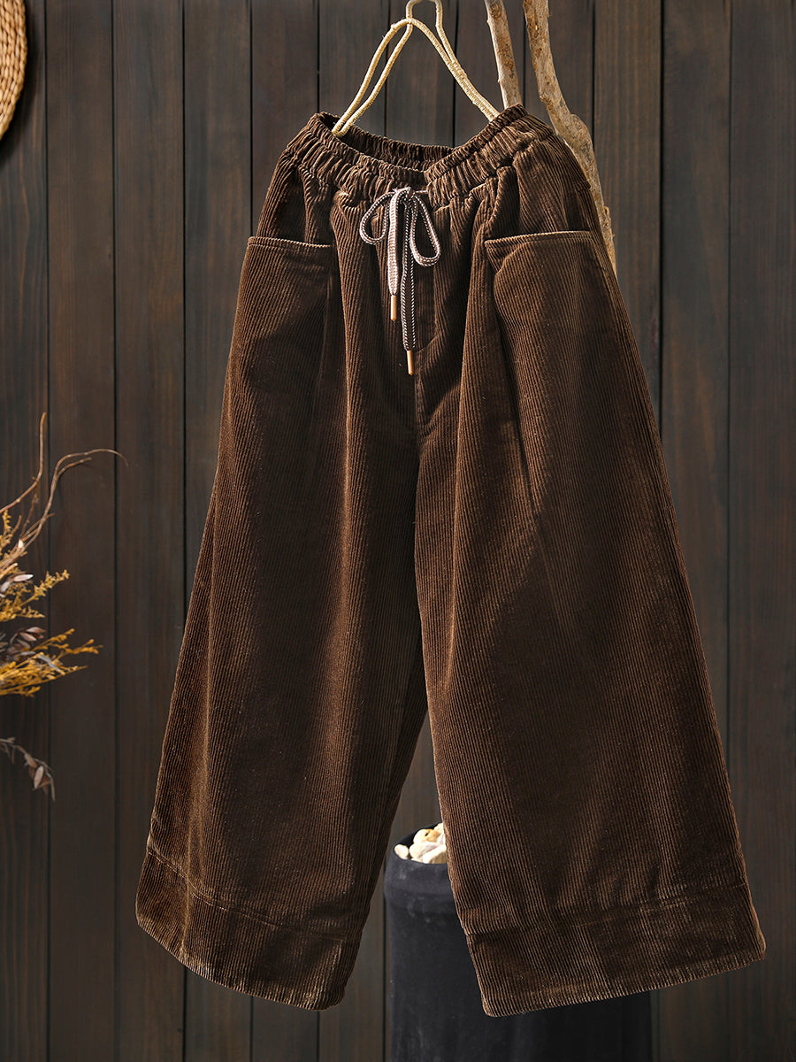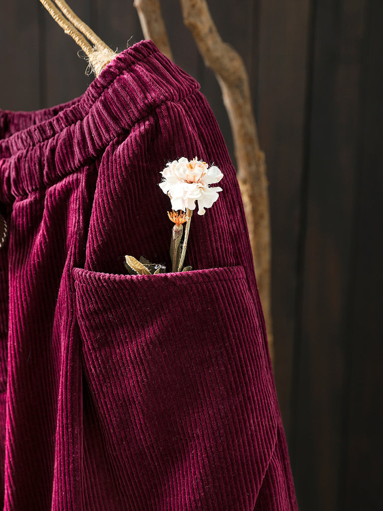 Dámské zimní retro manšestrové prošívané kalhoty s širokými nohavicemi
