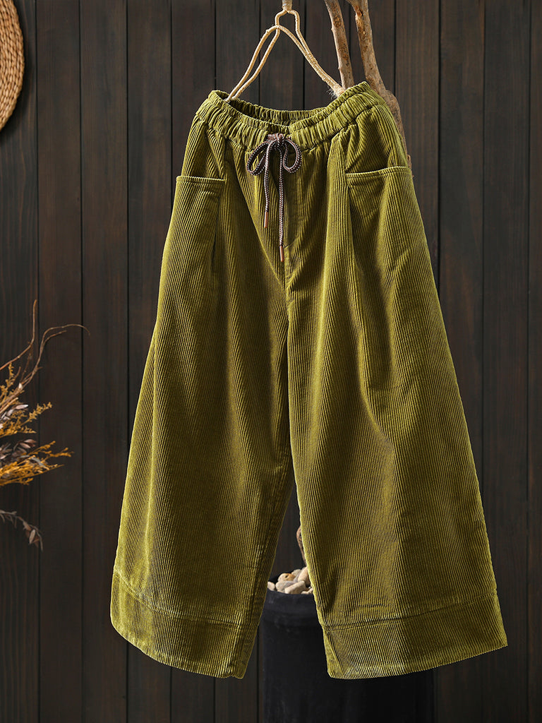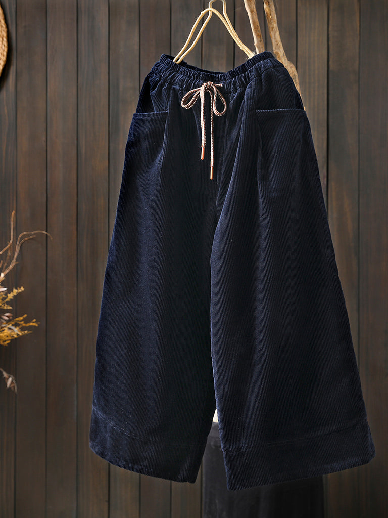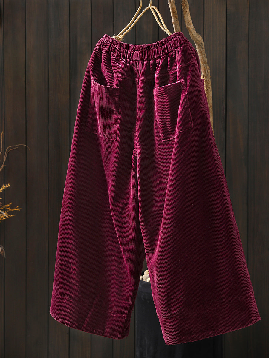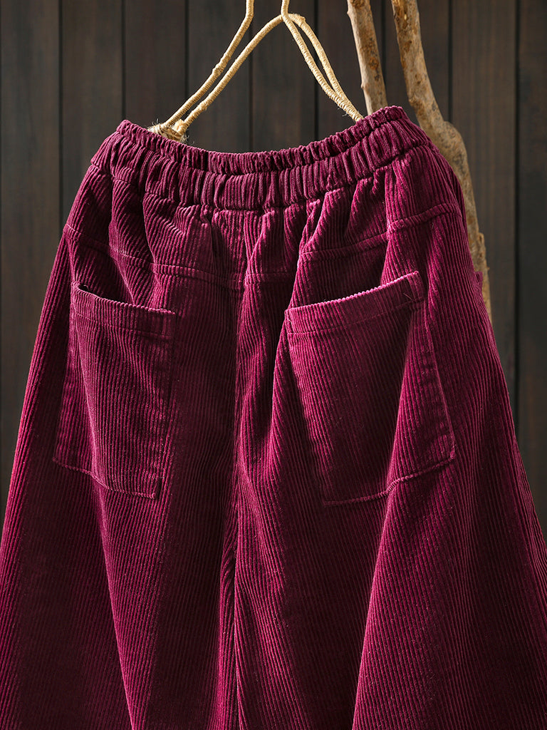 Dámské zimní retro manšestrové prošívané kalhoty s širokými nohavicemi
