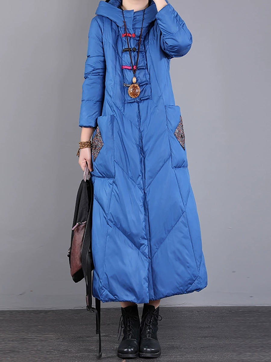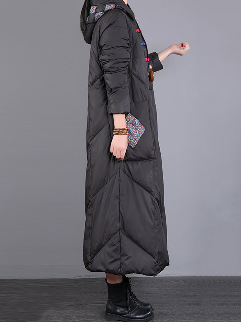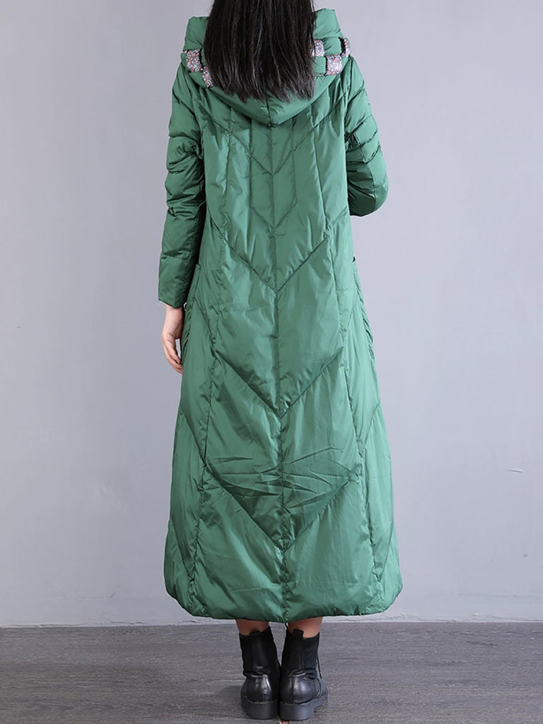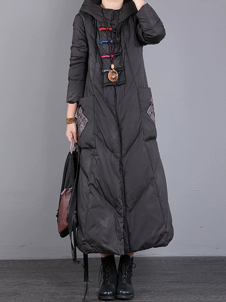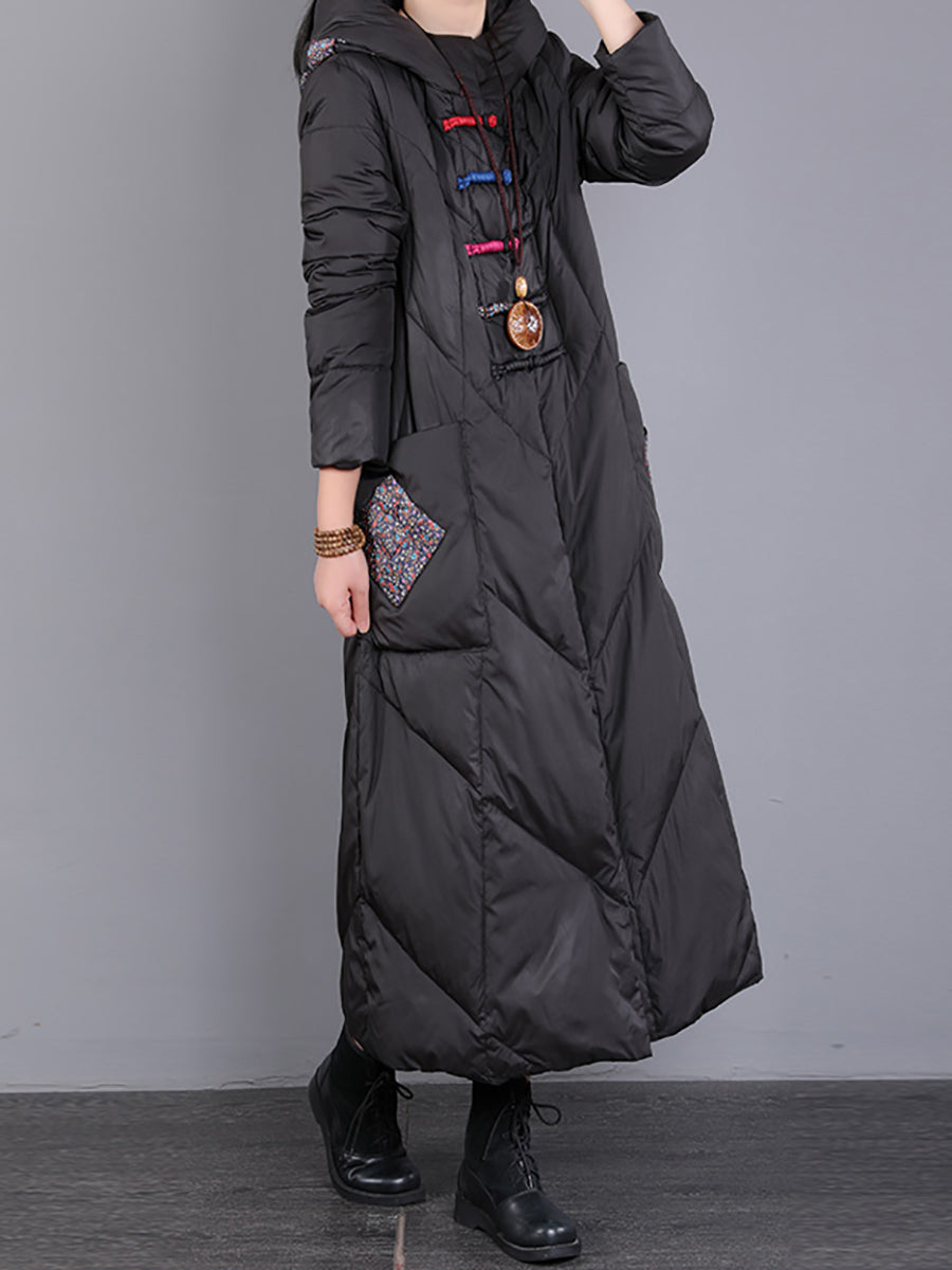 Dámský zimní retro výšivkový prošívaný dlouhý kabát