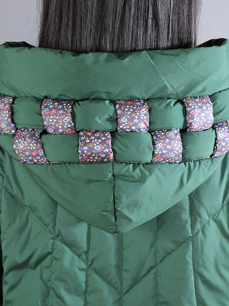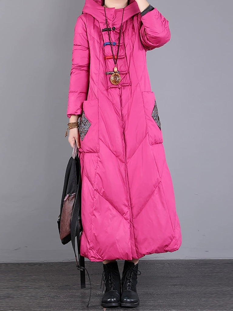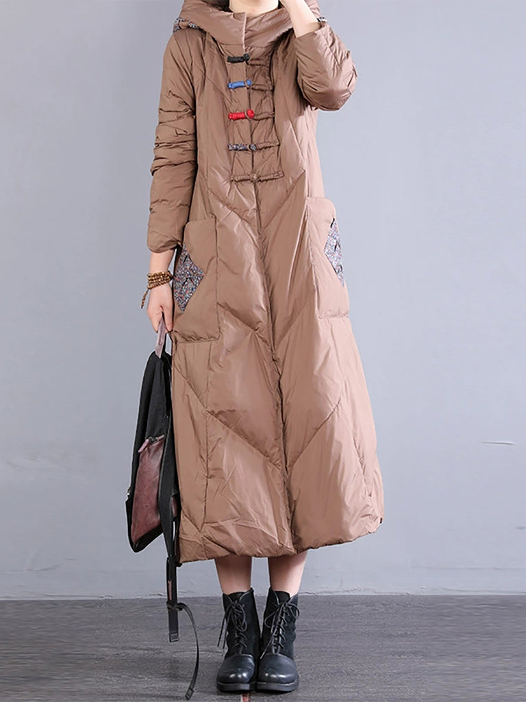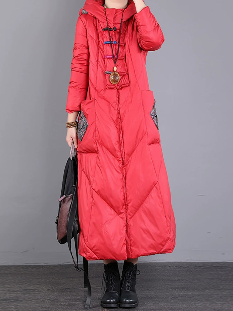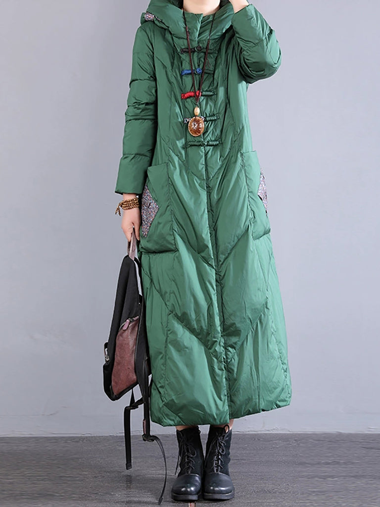 Dámský zimní retro výšivkový prošívaný dlouhý kabát