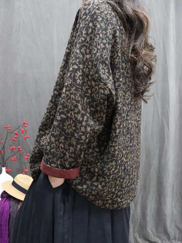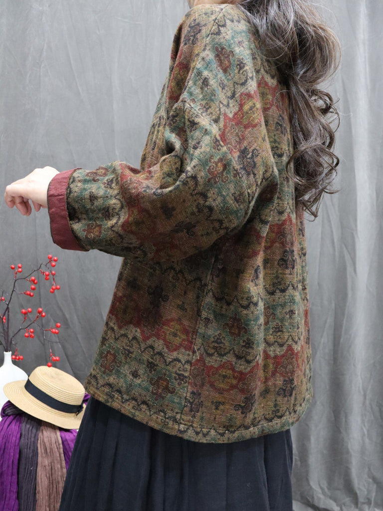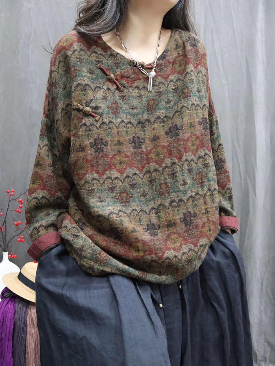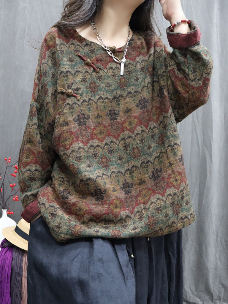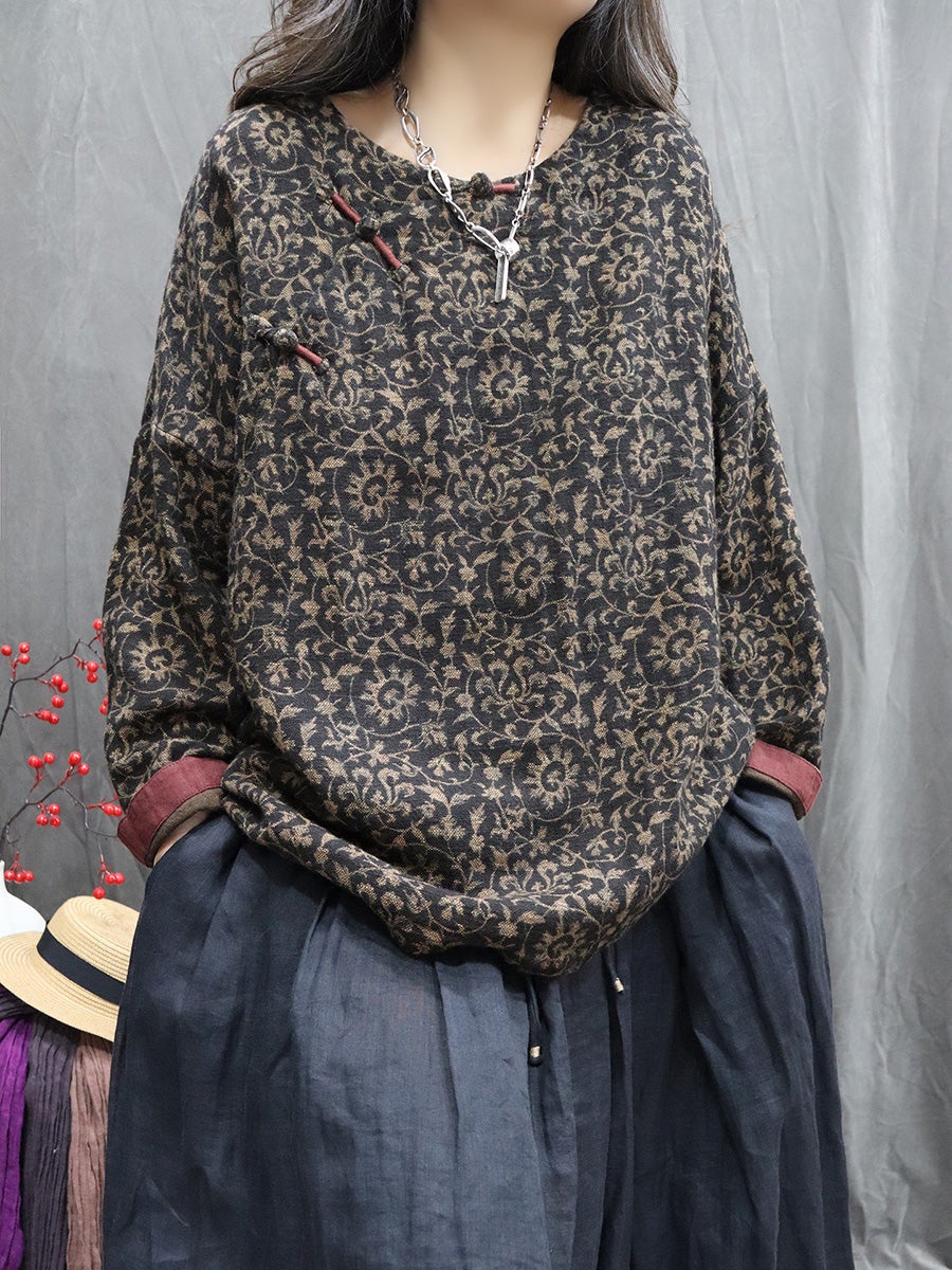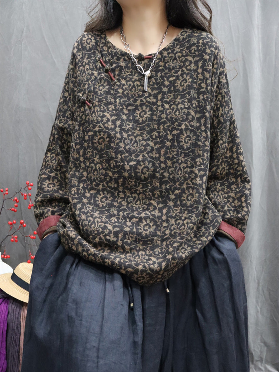 Dámské zimní retro tričko s květinovým výstřihem do O-neck