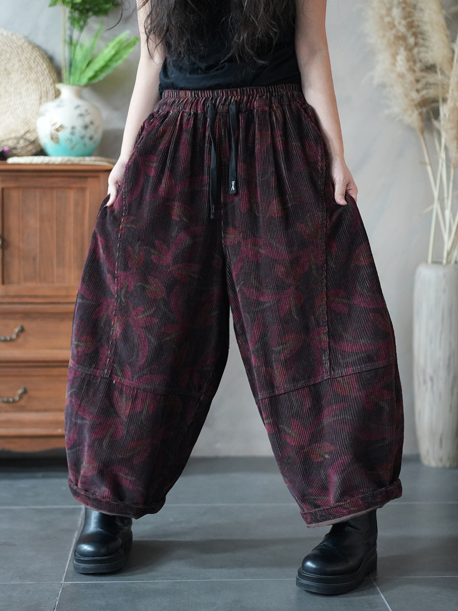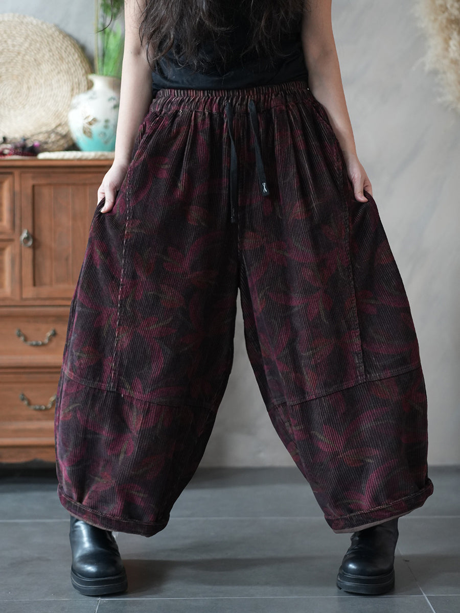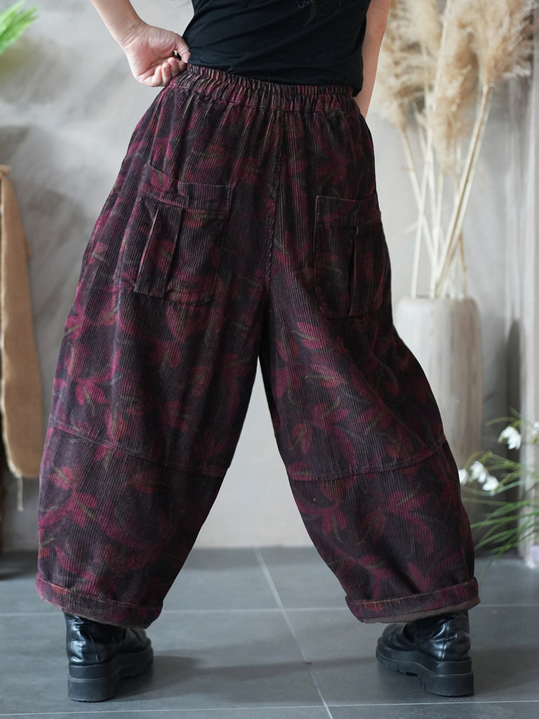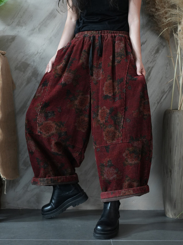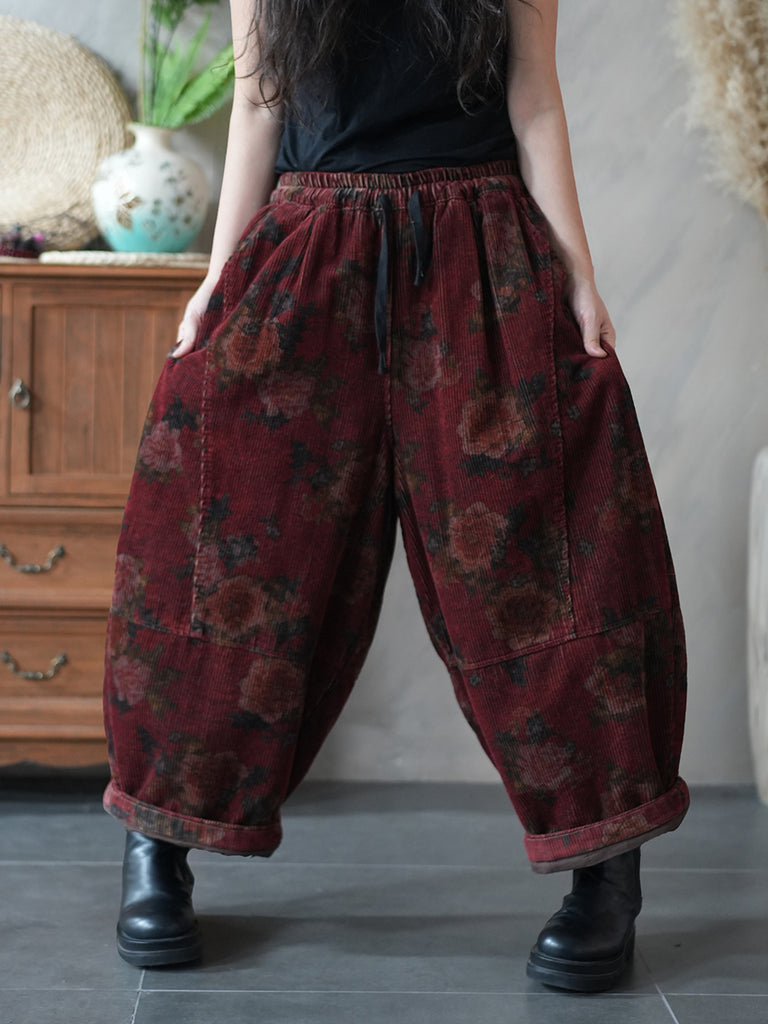 Dámské zimní retro květinové polstrované harémové kalhoty