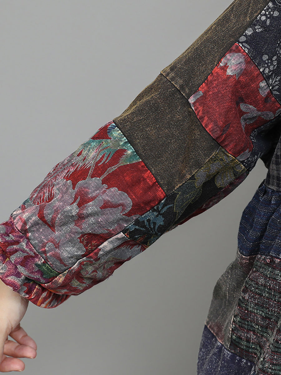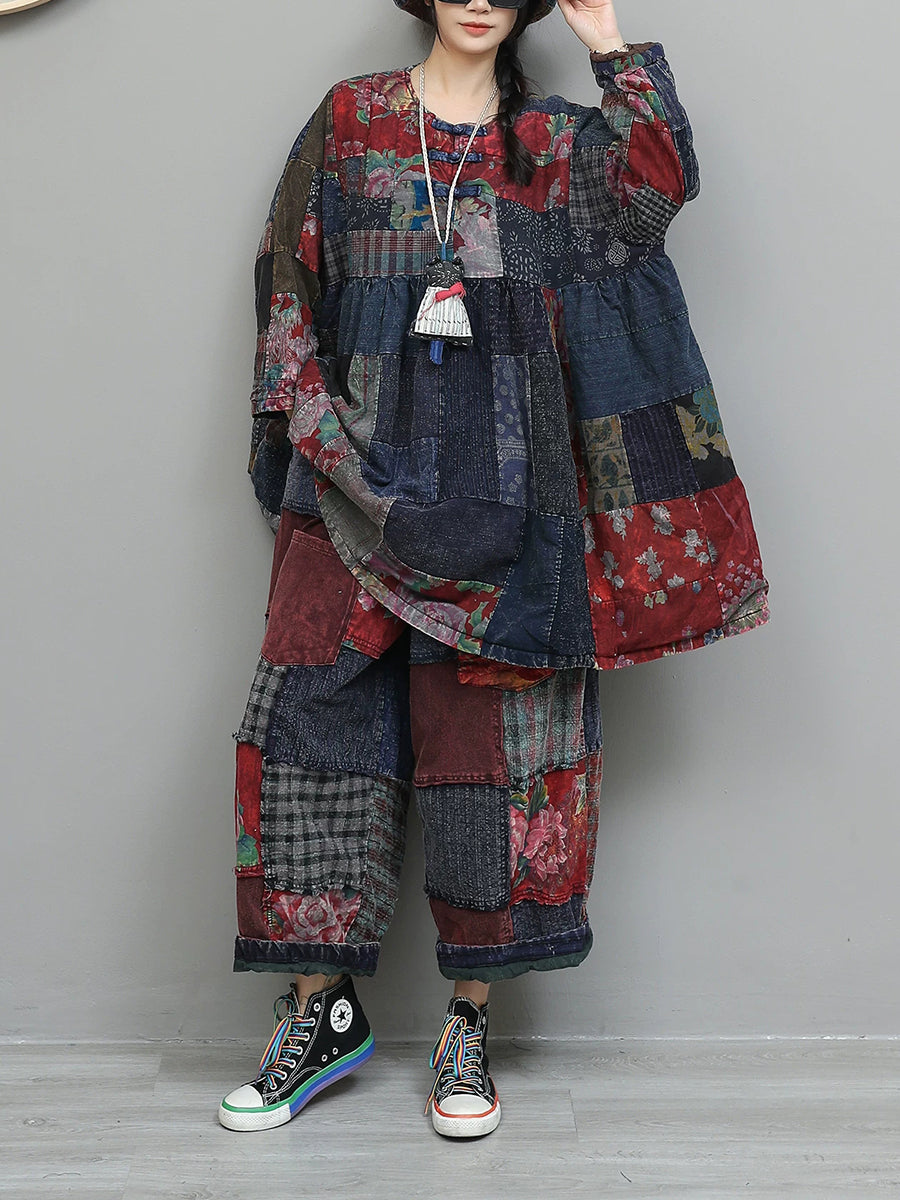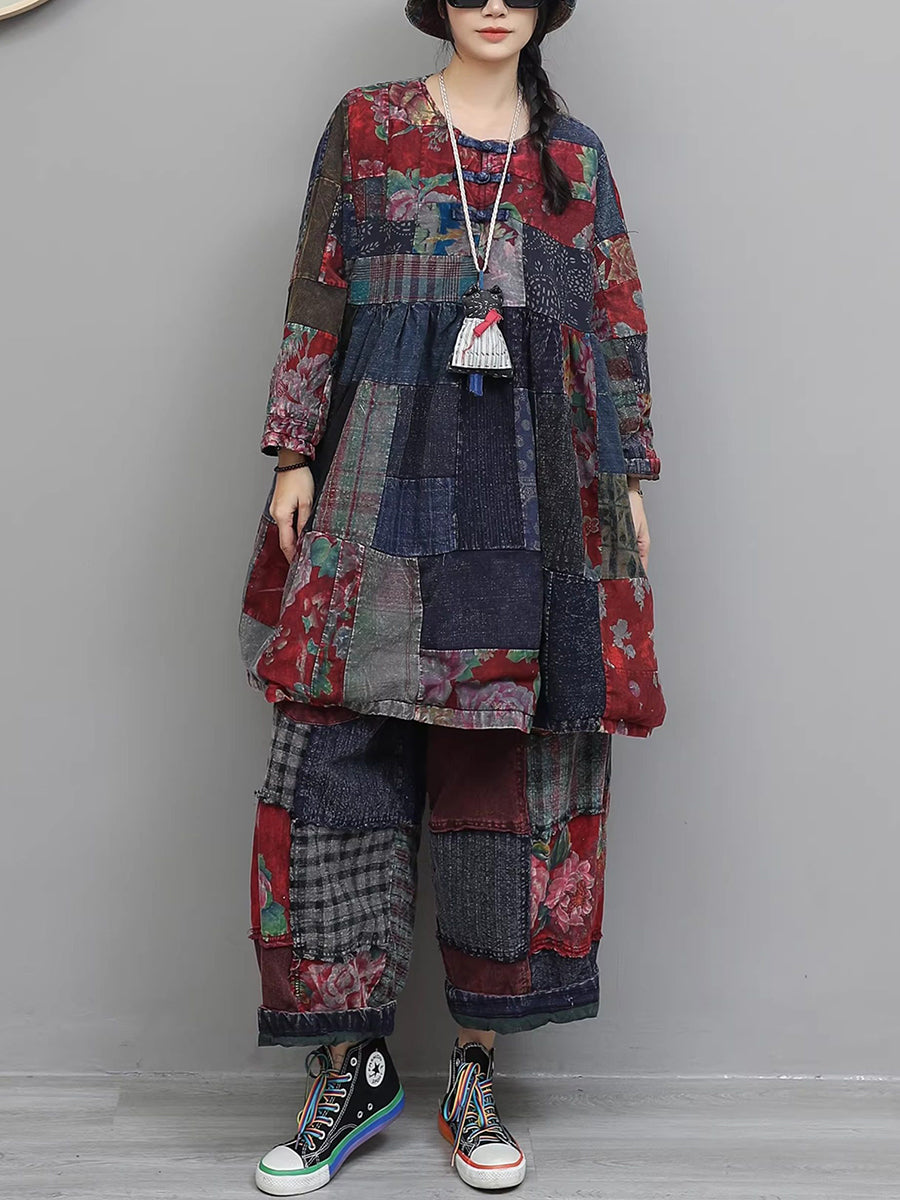 Dámské zimní retro nášivky s výstřihem do O-krku a prošívanými obleky