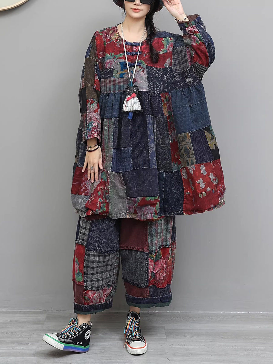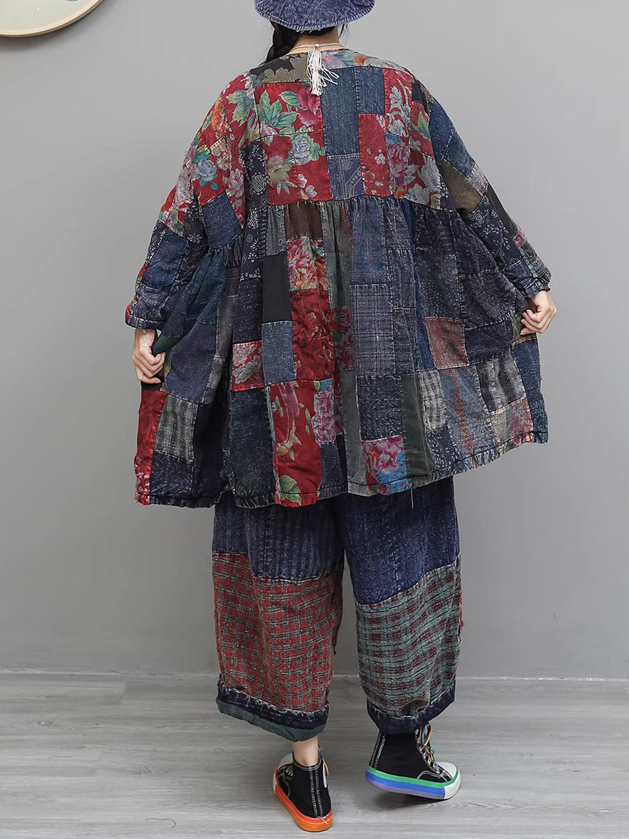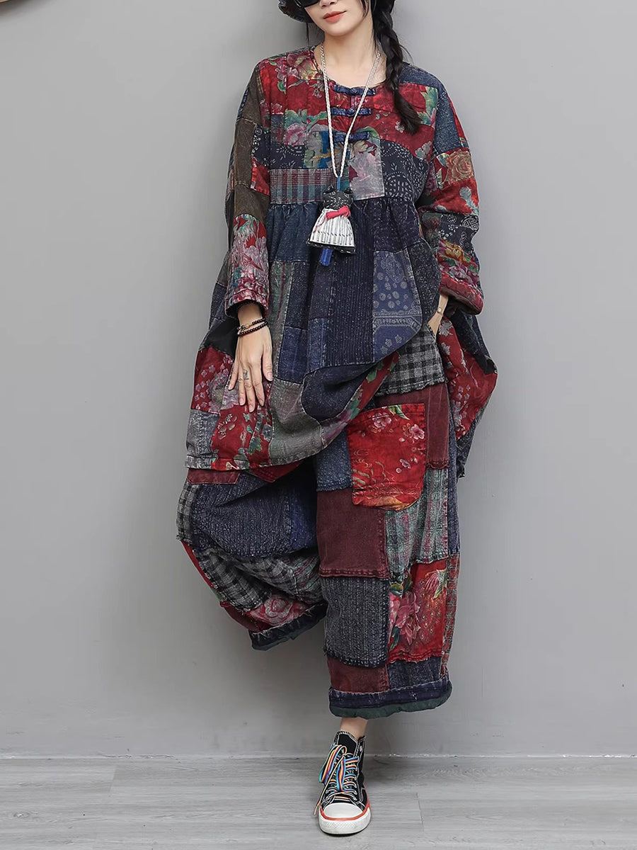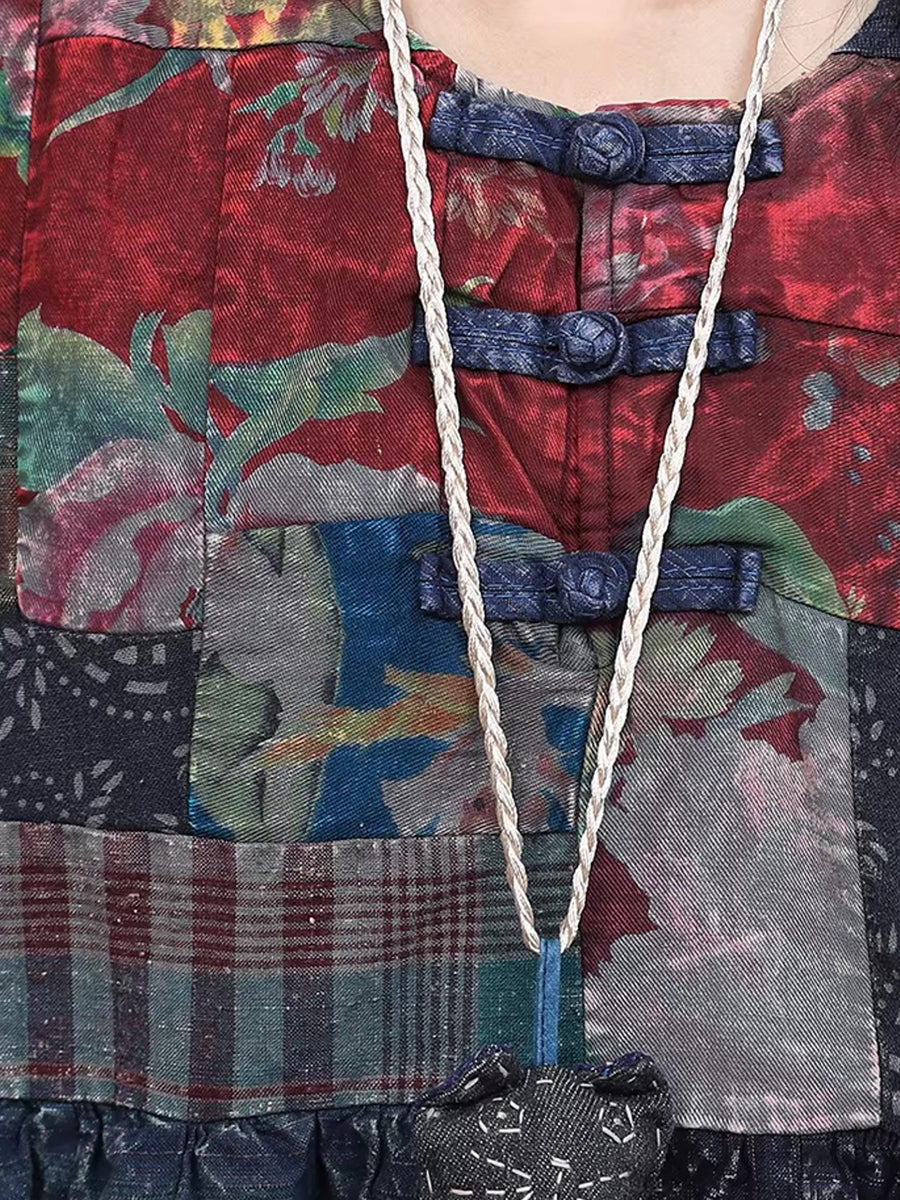 Dámské zimní retro nášivky s výstřihem do O-krku a prošívanými obleky