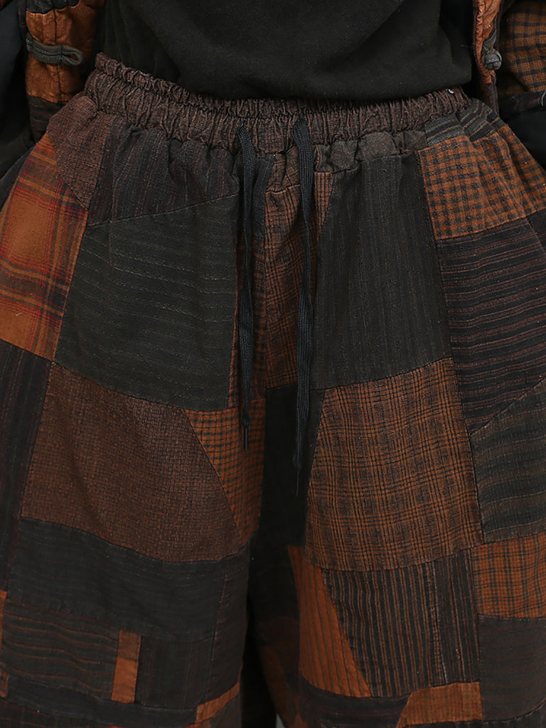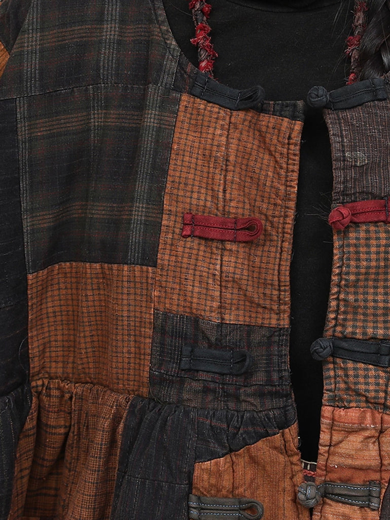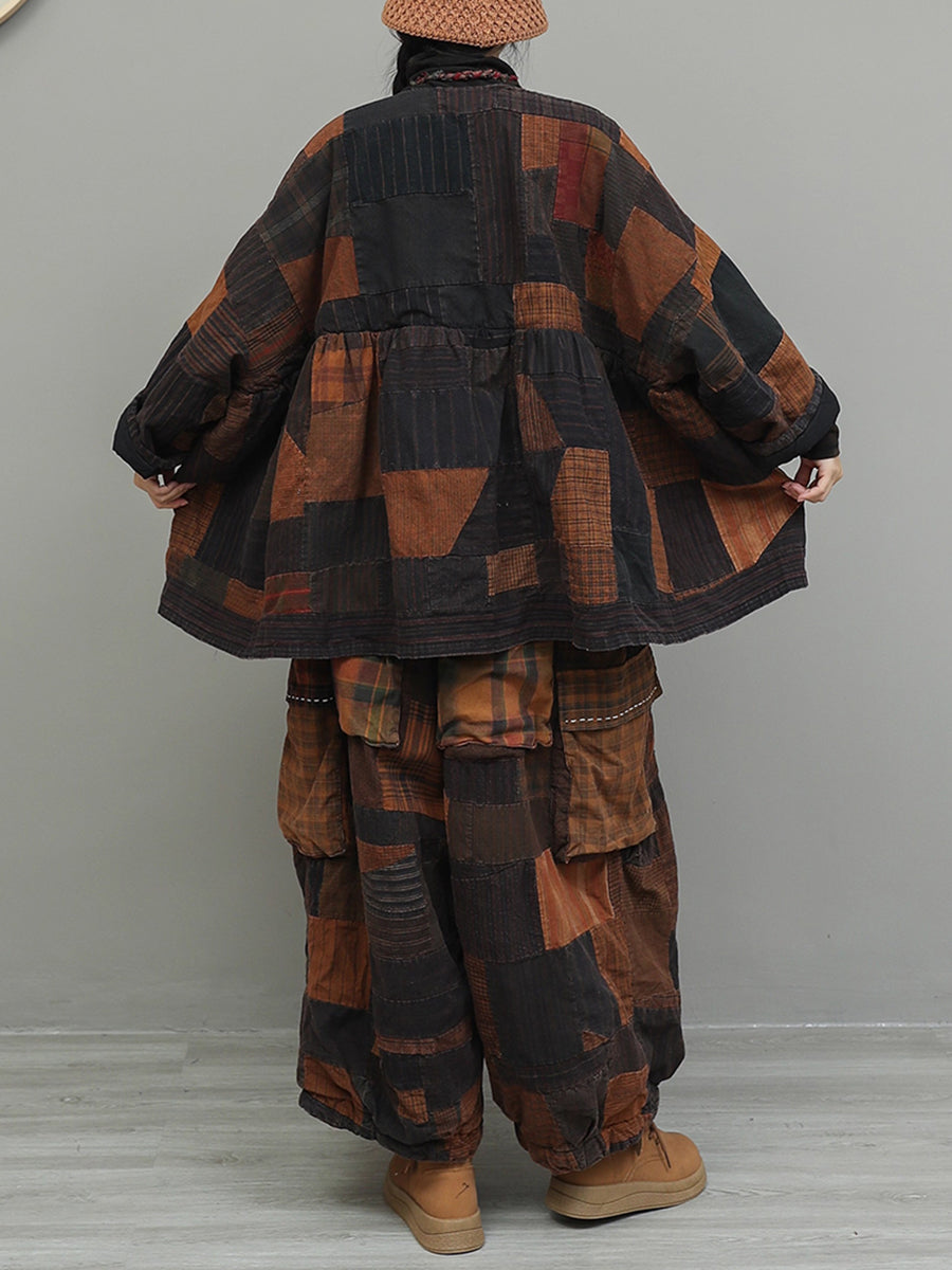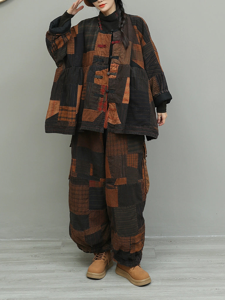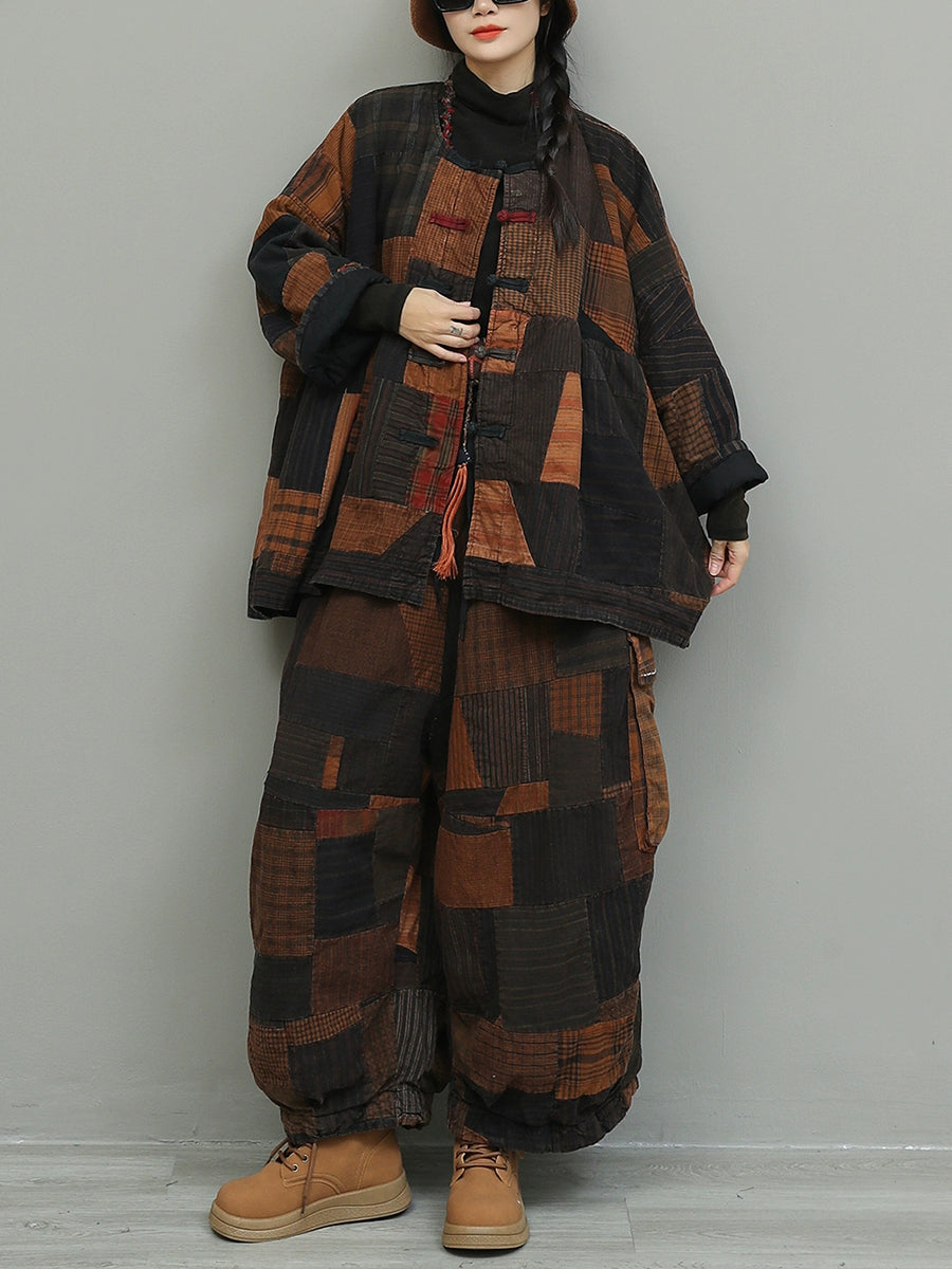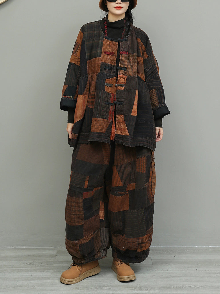 Dámské zimní retro patchworkové prošívané obleky s výstřihem do O