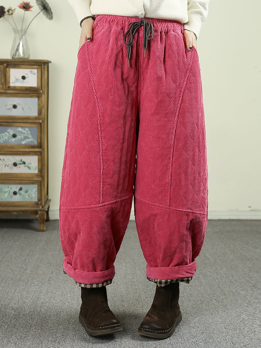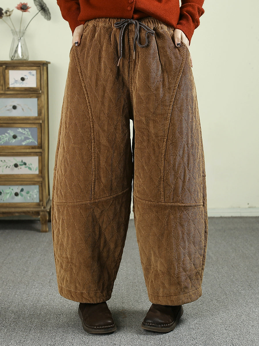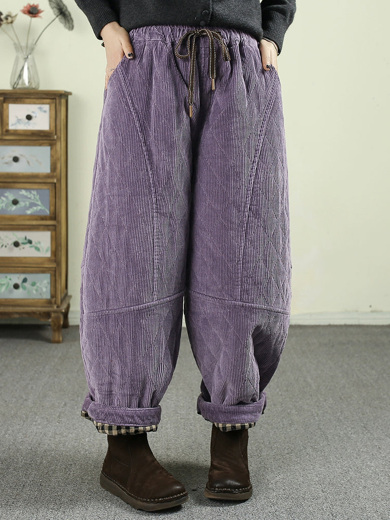 Dámské zimní retro manšestrové polstrované harémové kalhoty v čisté barvě