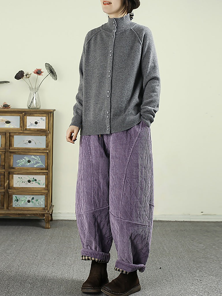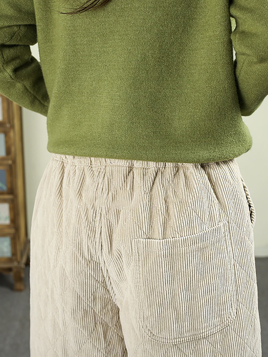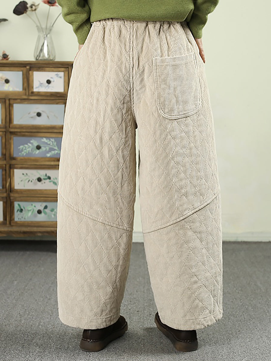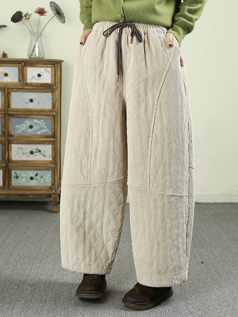 Dámské zimní retro manšestrové polstrované harémové kalhoty v čisté barvě