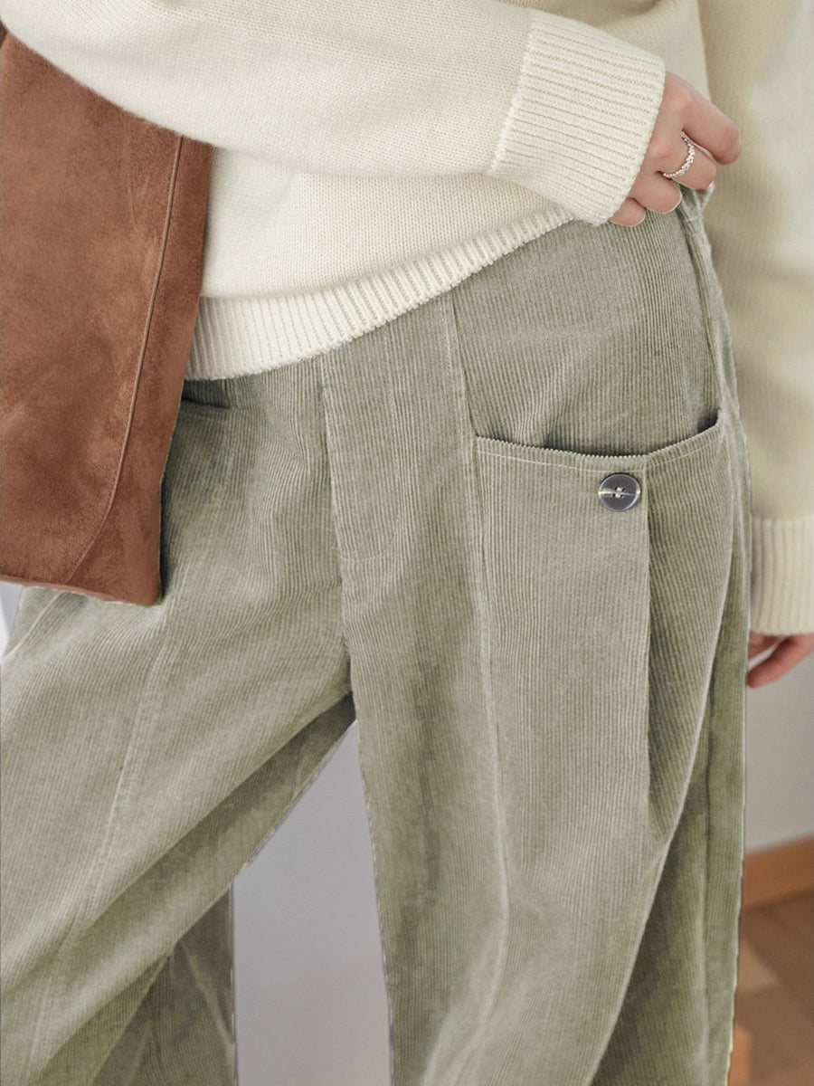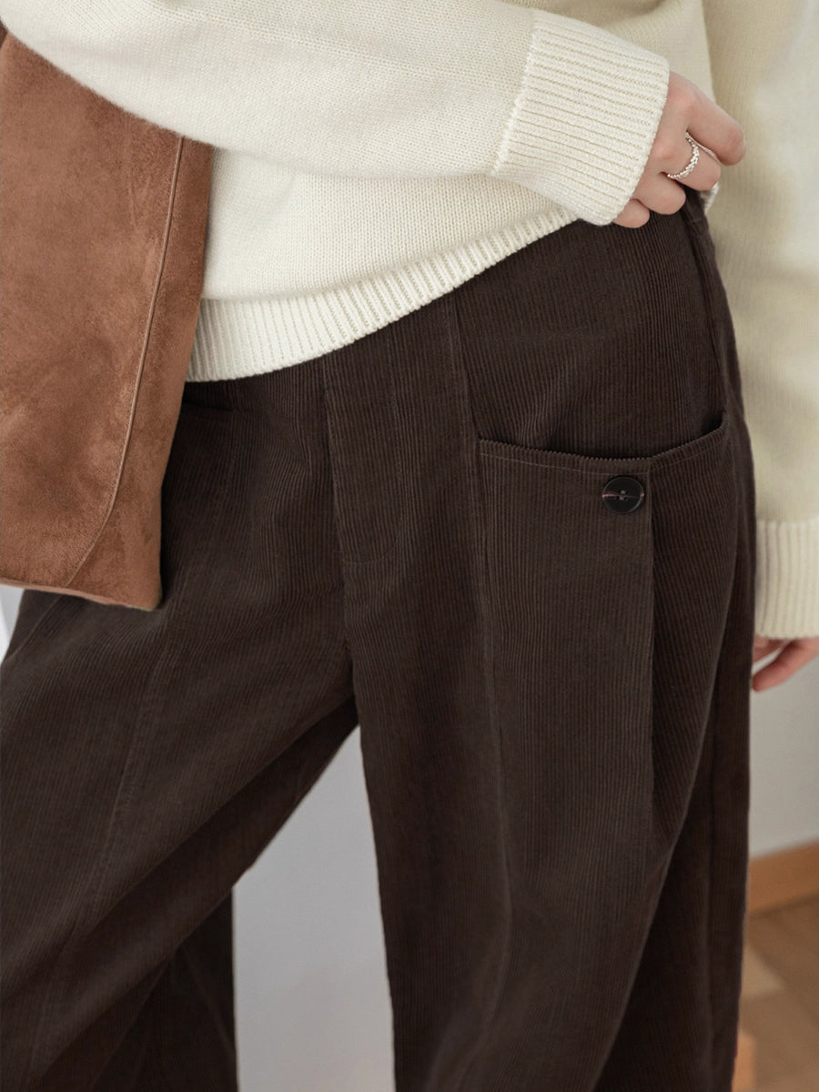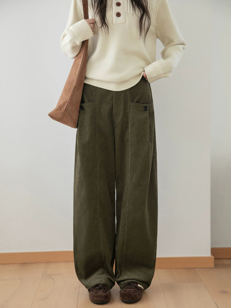 Dámské zimní retro manšestrové kalhoty s širokými nohavicemi v čistě barevných barvách