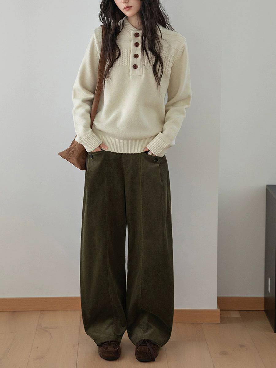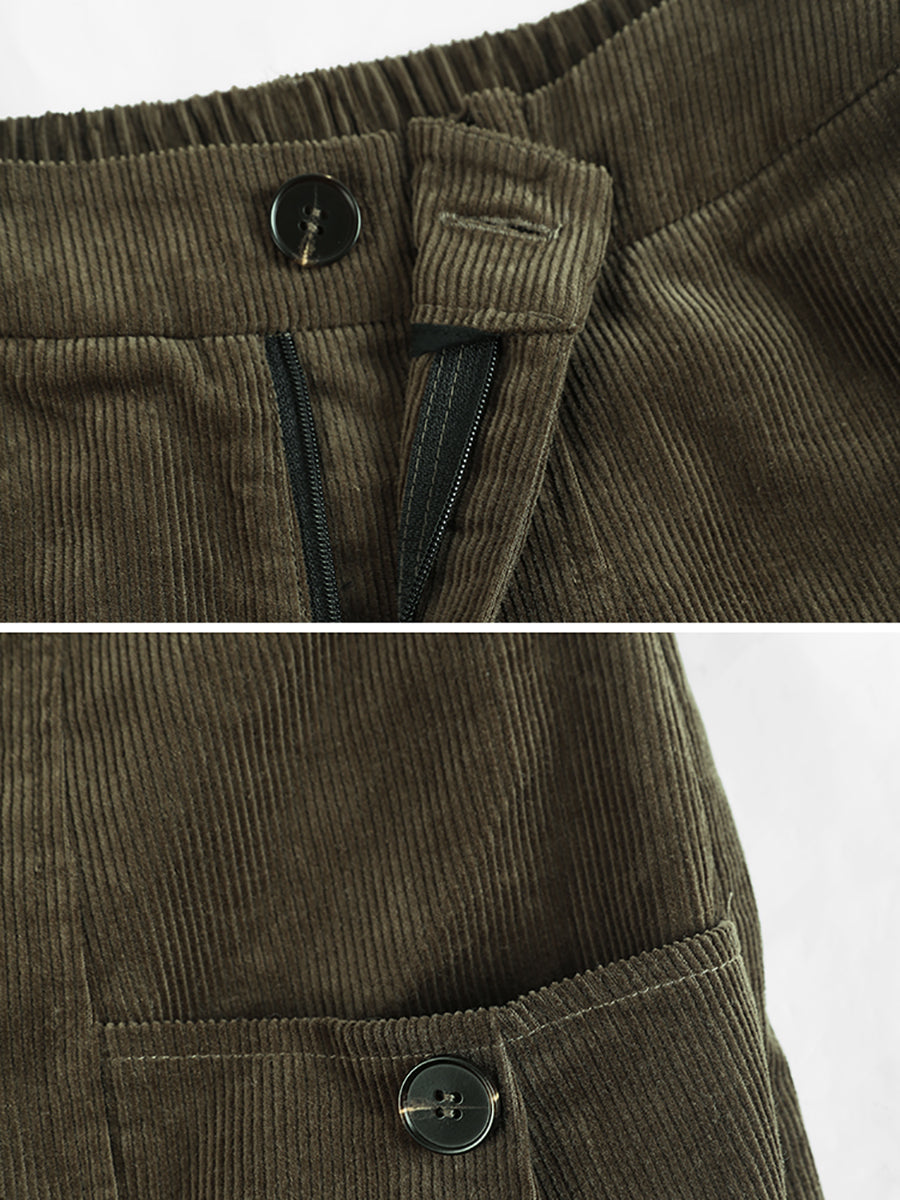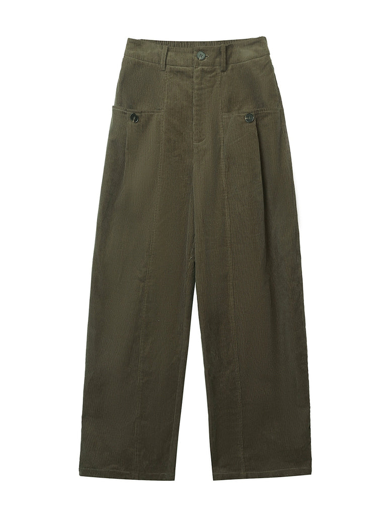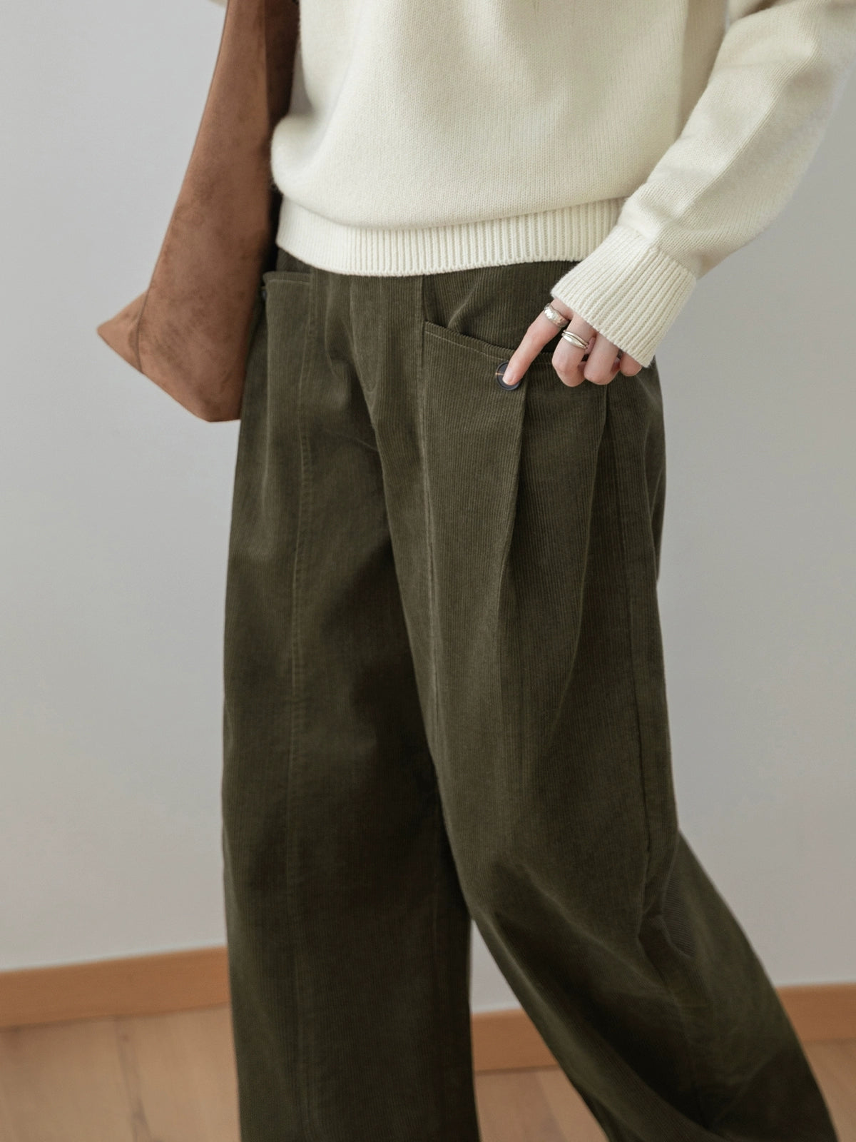 Dámské zimní retro manšestrové kalhoty s širokými nohavicemi v čistě barevných barvách