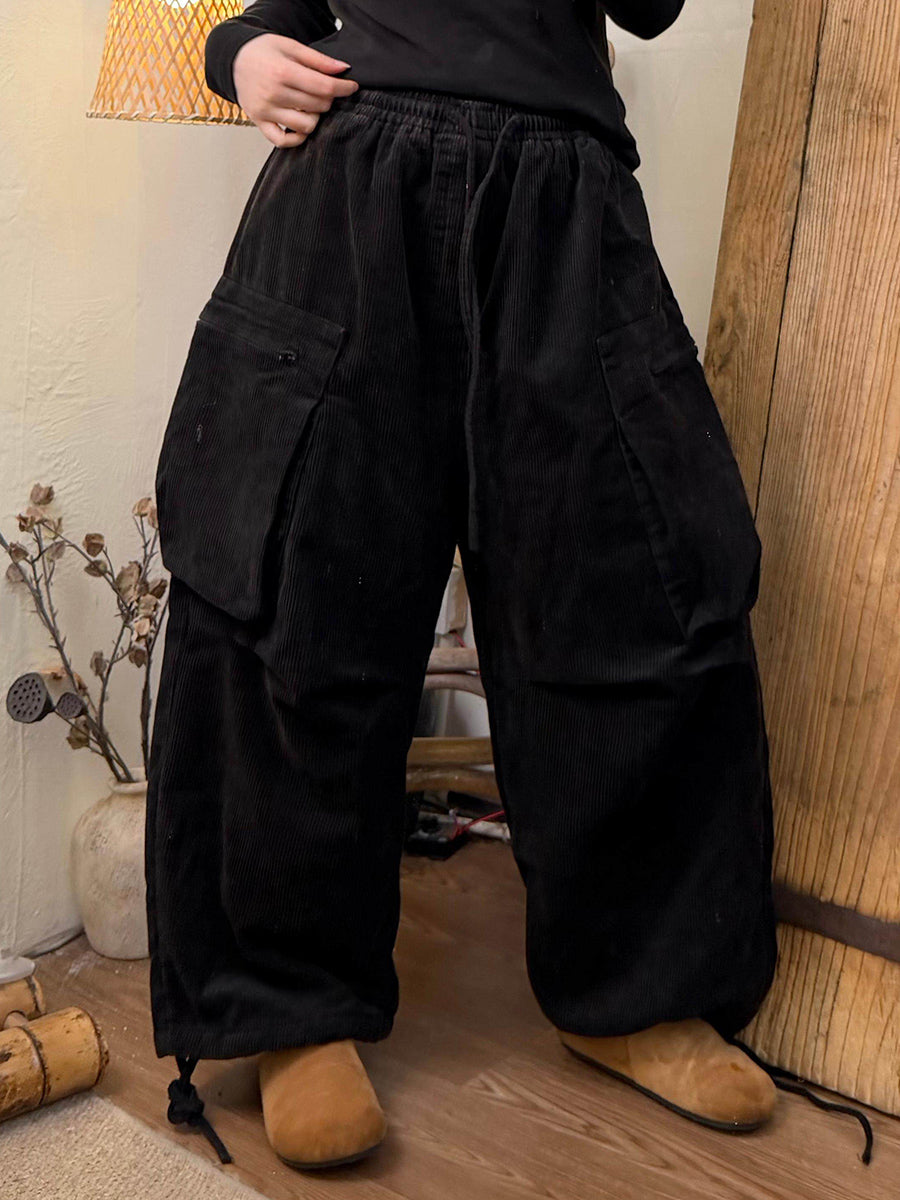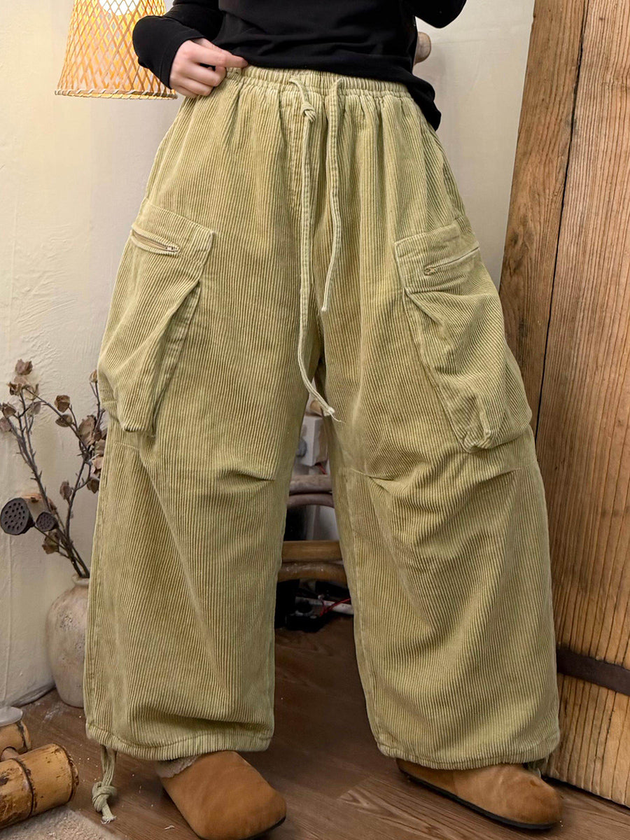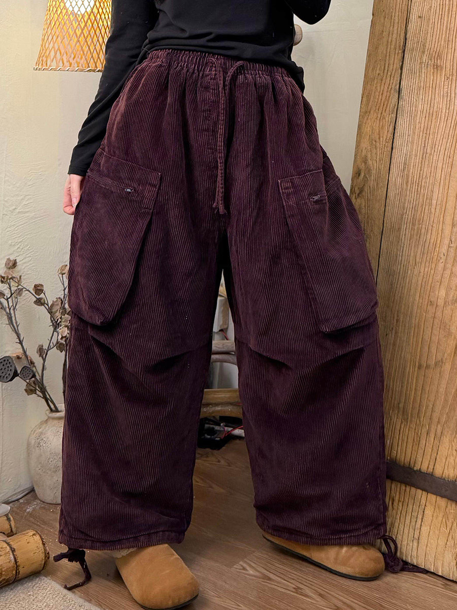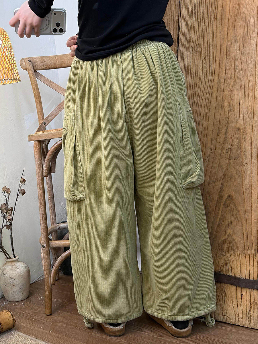 Dámské zimní retro manšestrové kalhoty s širokými nohavicemi v čistě barevných barvách