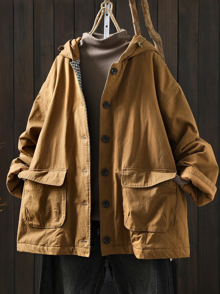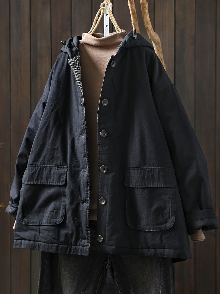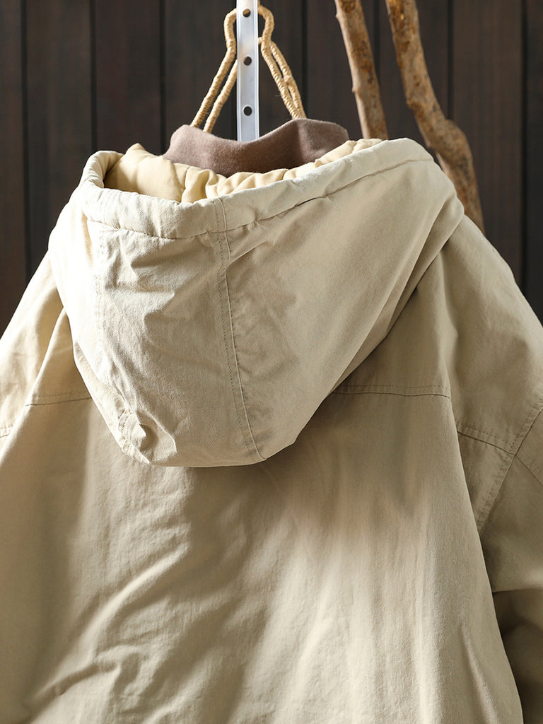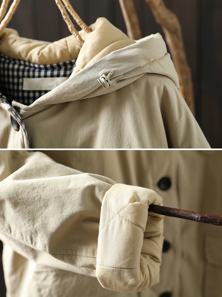 Dámský zimní retro prošívaný kabát s kapucí v čistých barvách