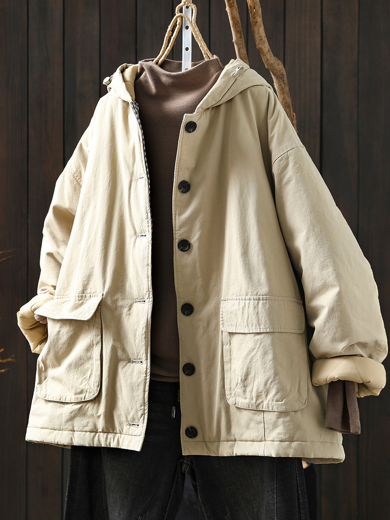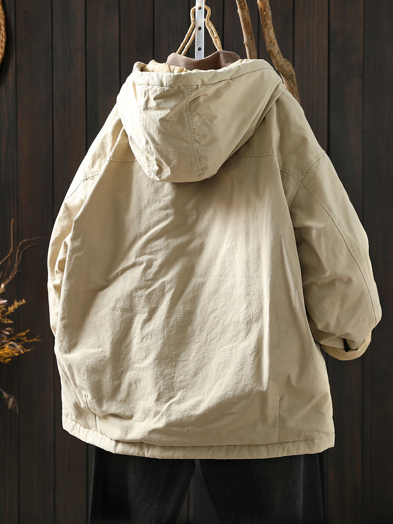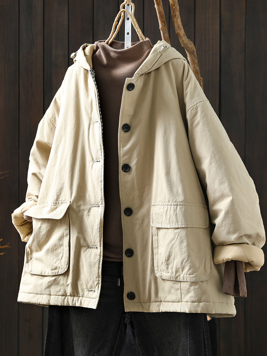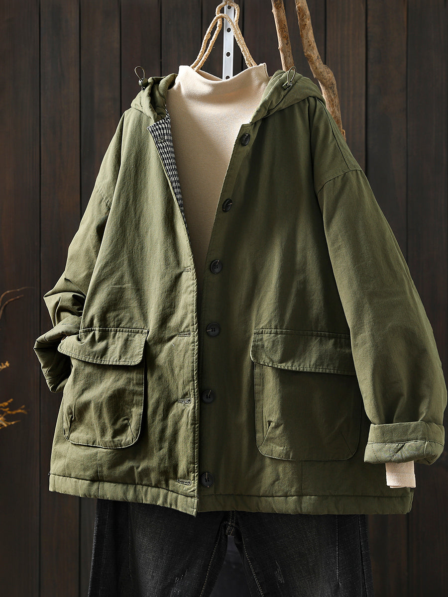 Dámský zimní retro prošívaný kabát s kapucí v čistých barvách