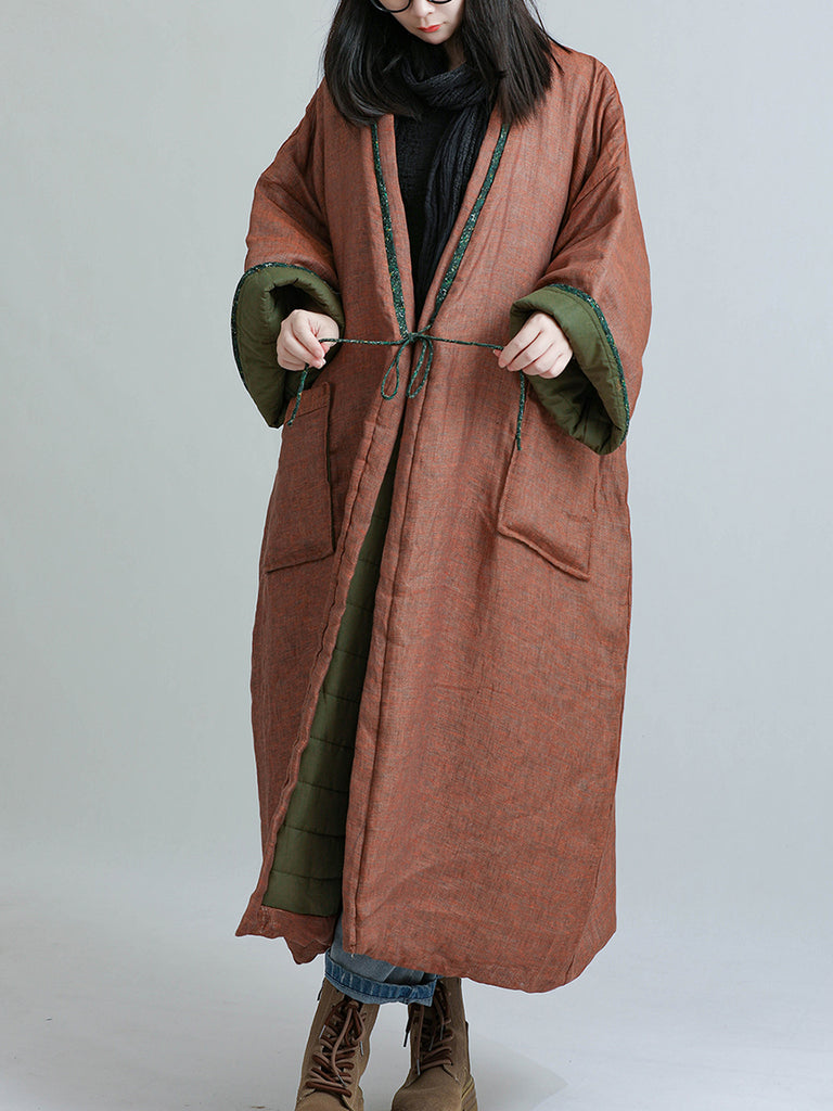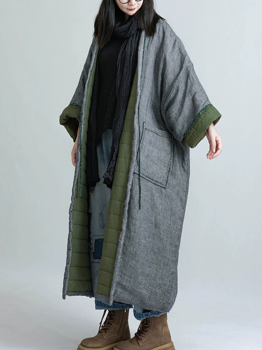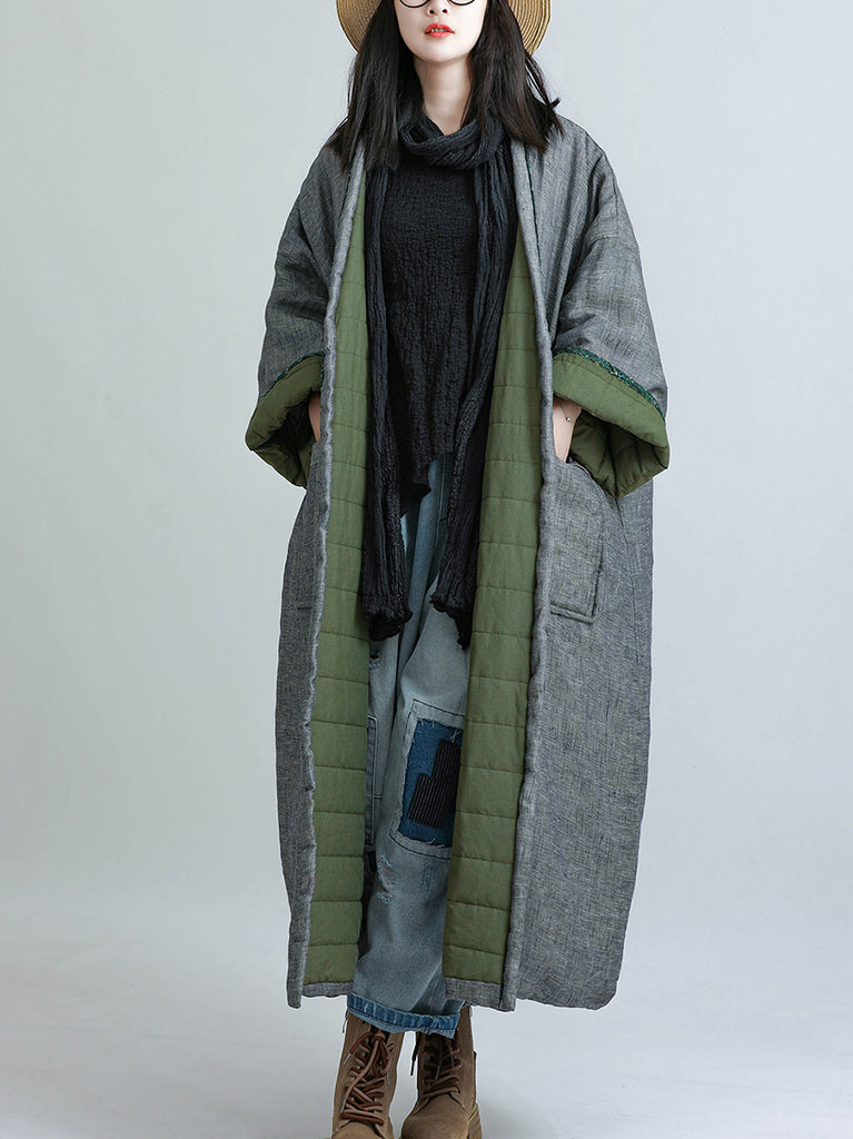 Dámský zimní retro prošívaný kabát s výstřihem do V v čistých barvách