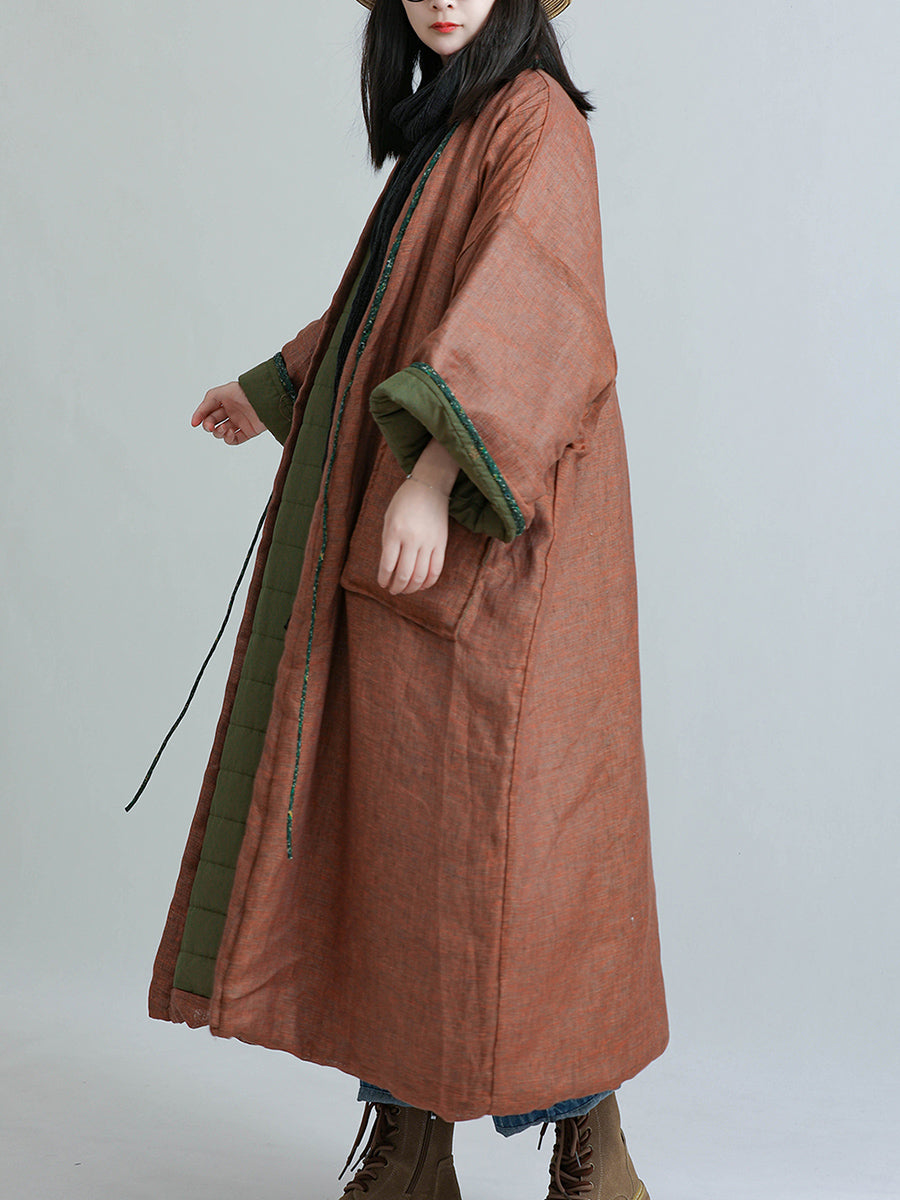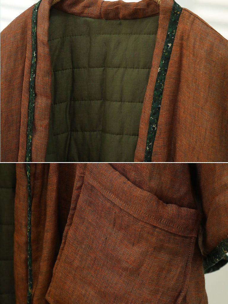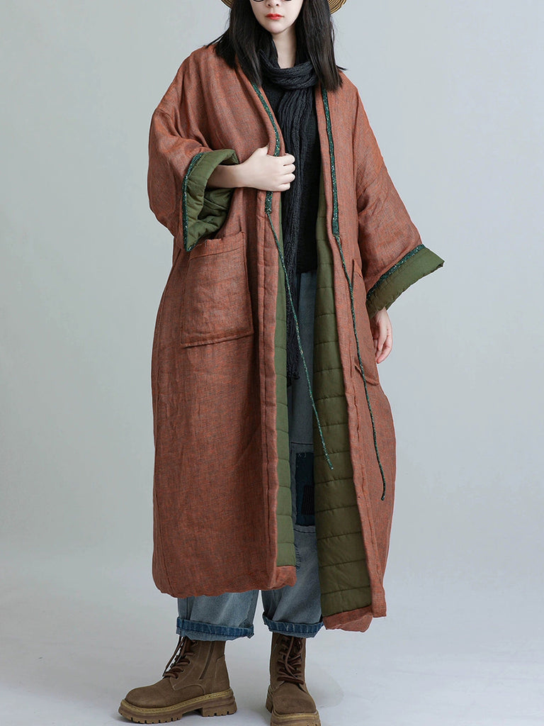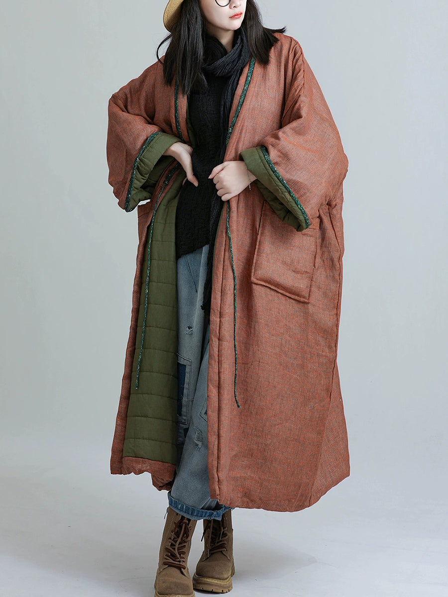 Dámský zimní retro prošívaný kabát s výstřihem do V v čistých barvách