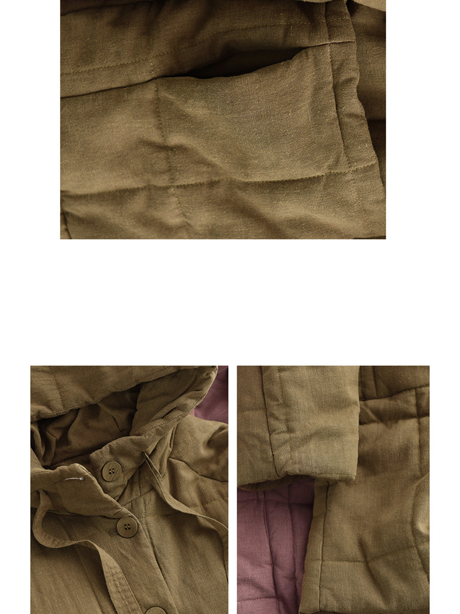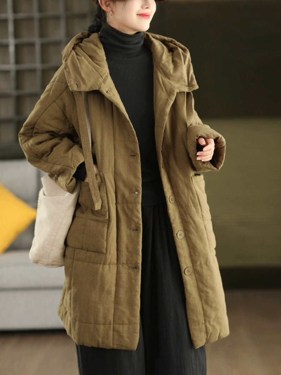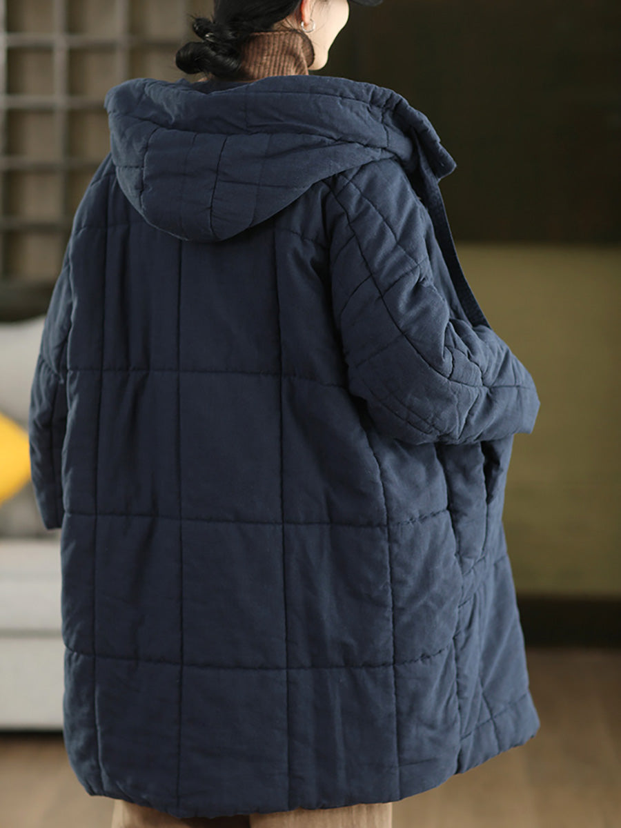 Dámský zimní retro prošívaný kabát s kapucí z ramie