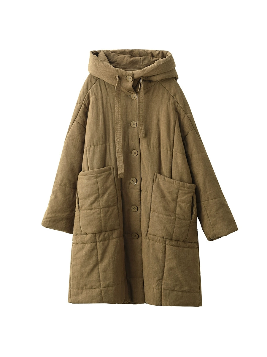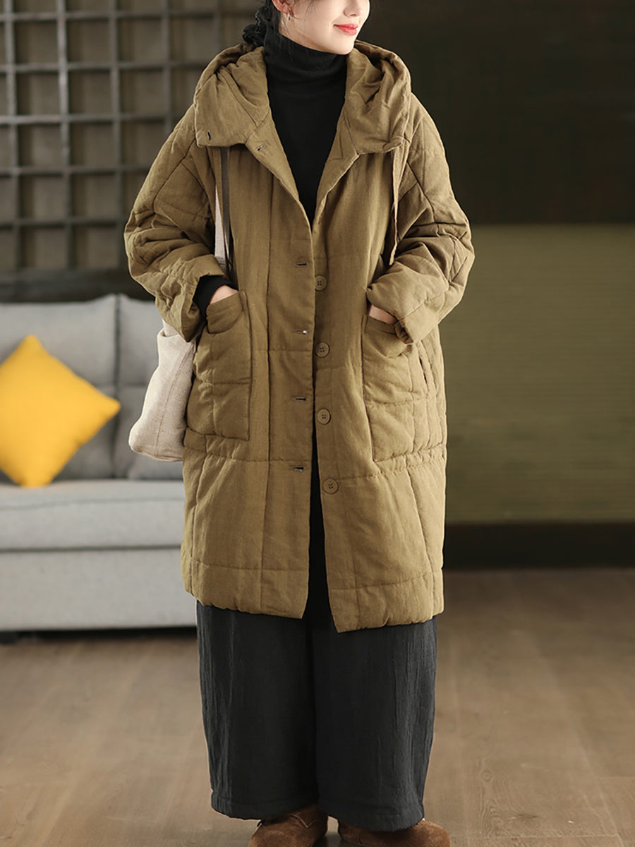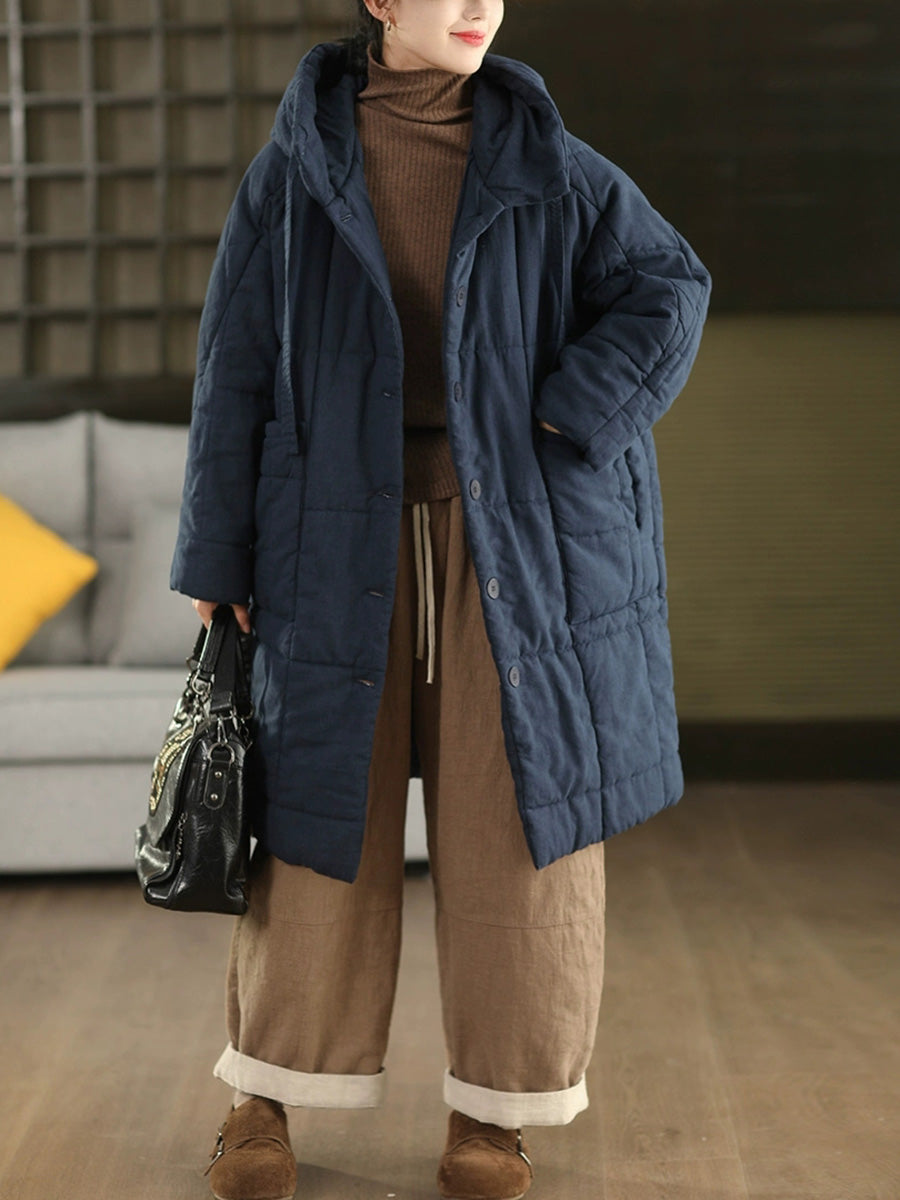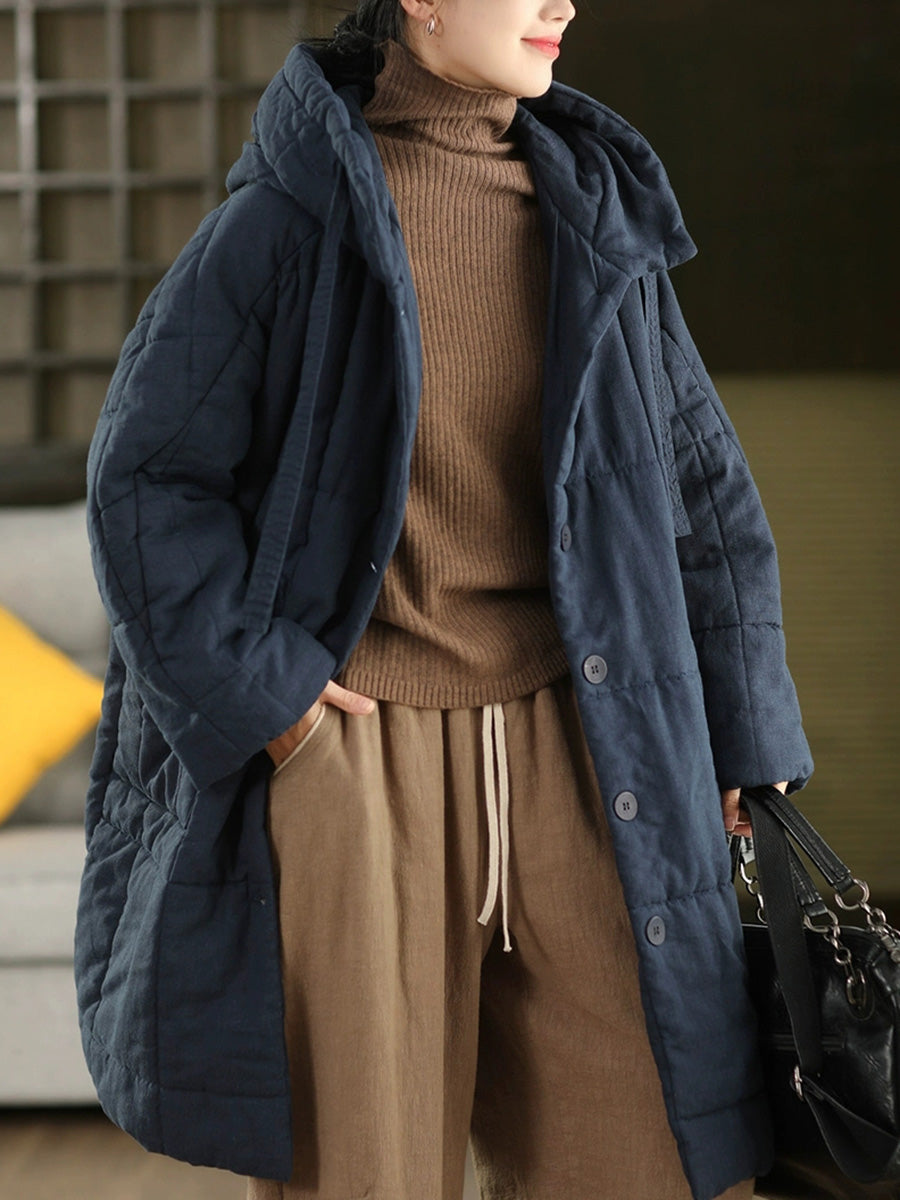 Dámský zimní retro prošívaný kabát s kapucí z ramie