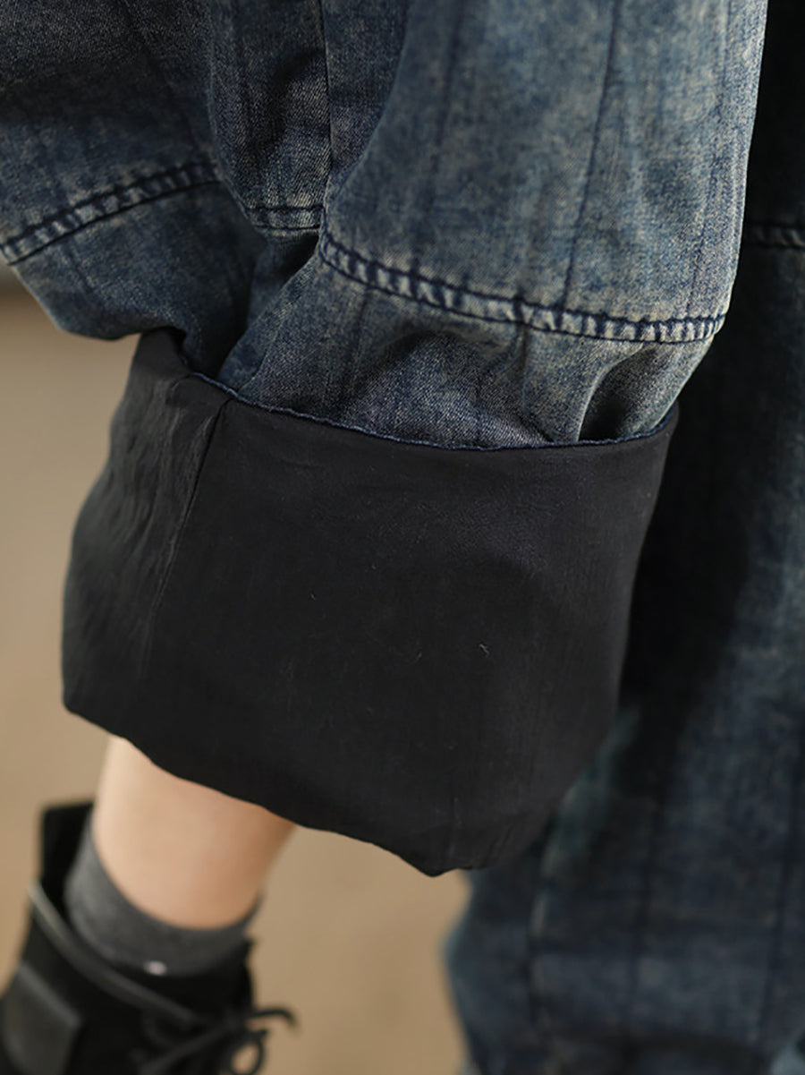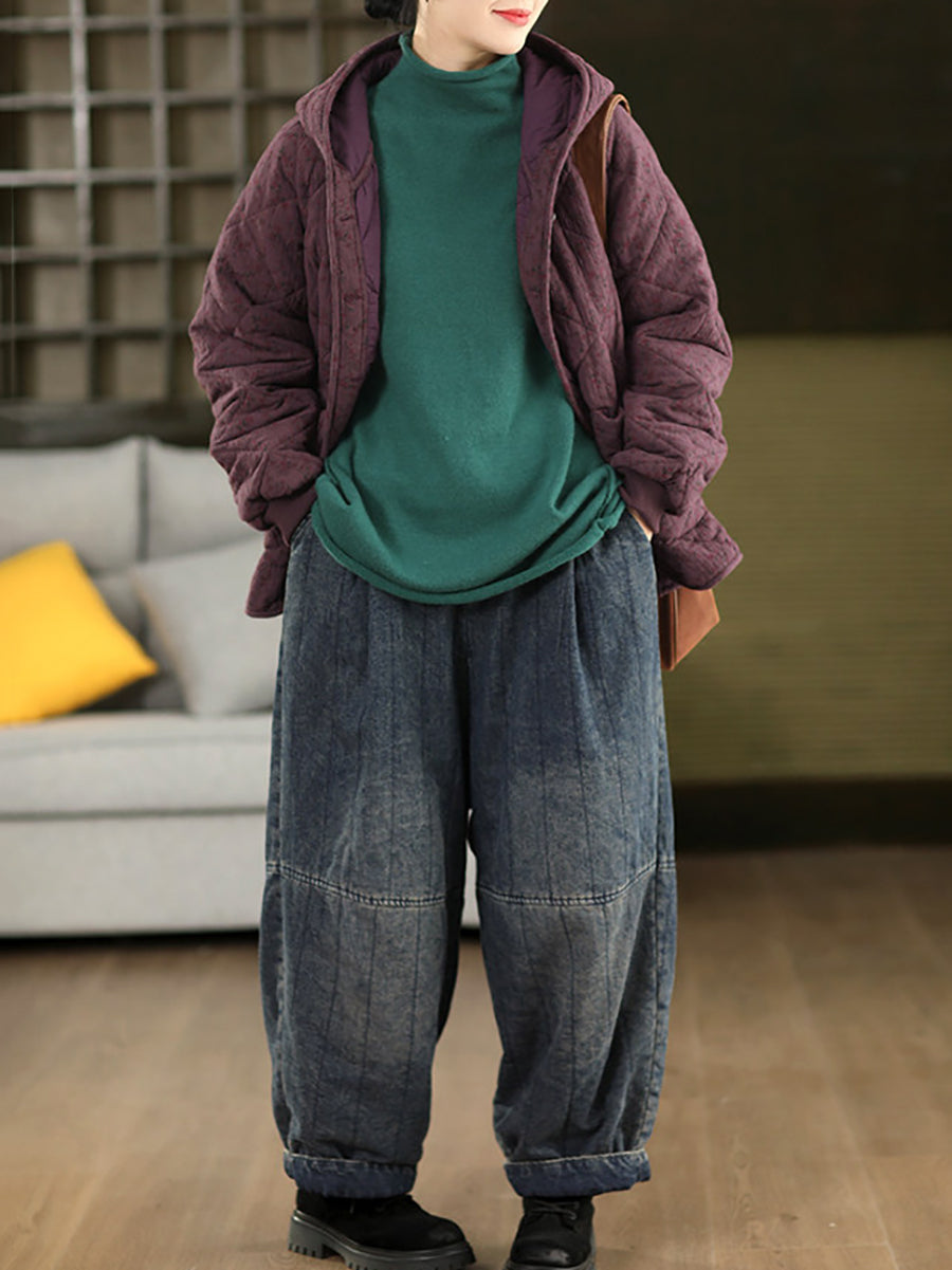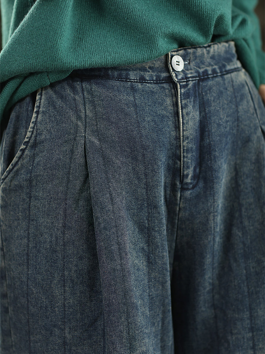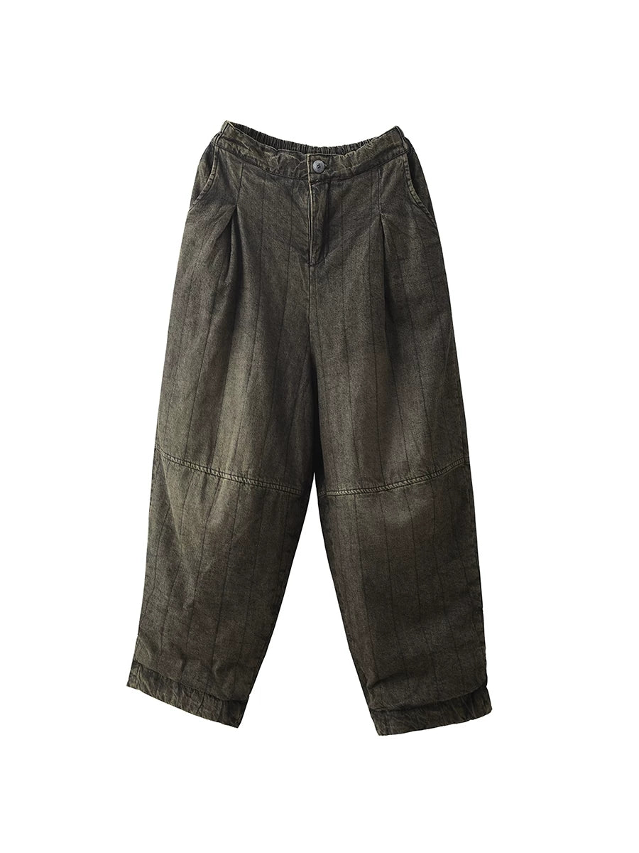 Dámské zimní retro seprané džínové prošívané kalhoty