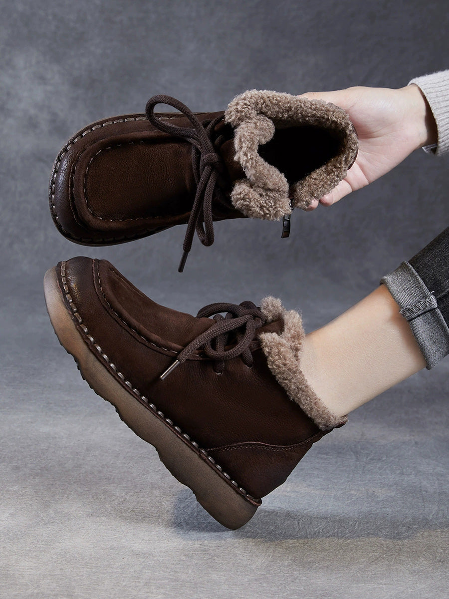 Dámské zimní kotníkové boty z kůže s fleecovou podšívkou