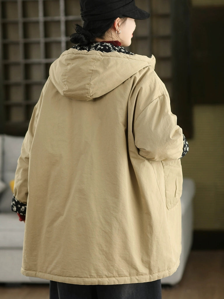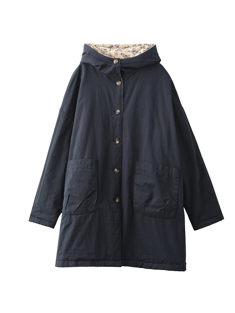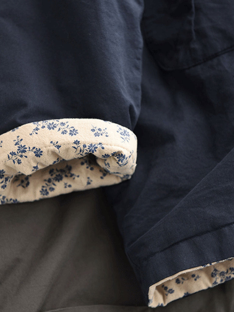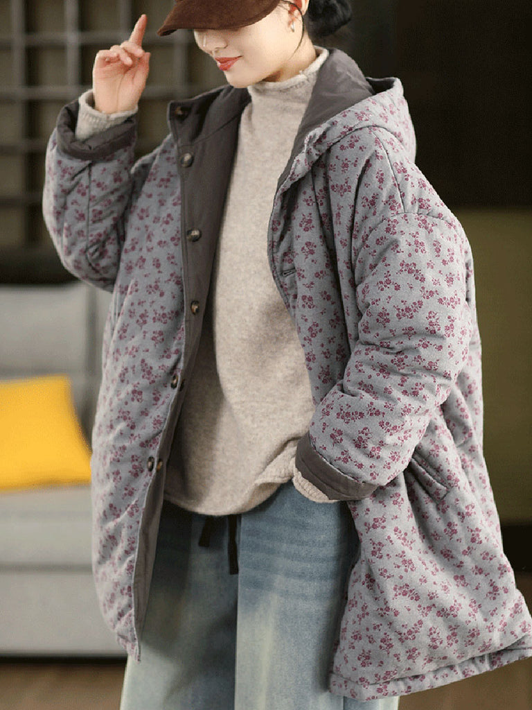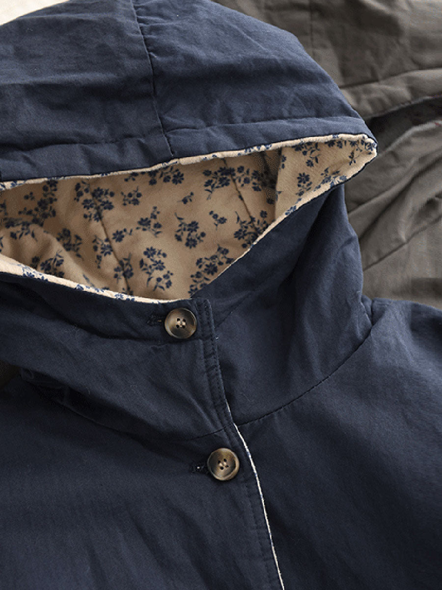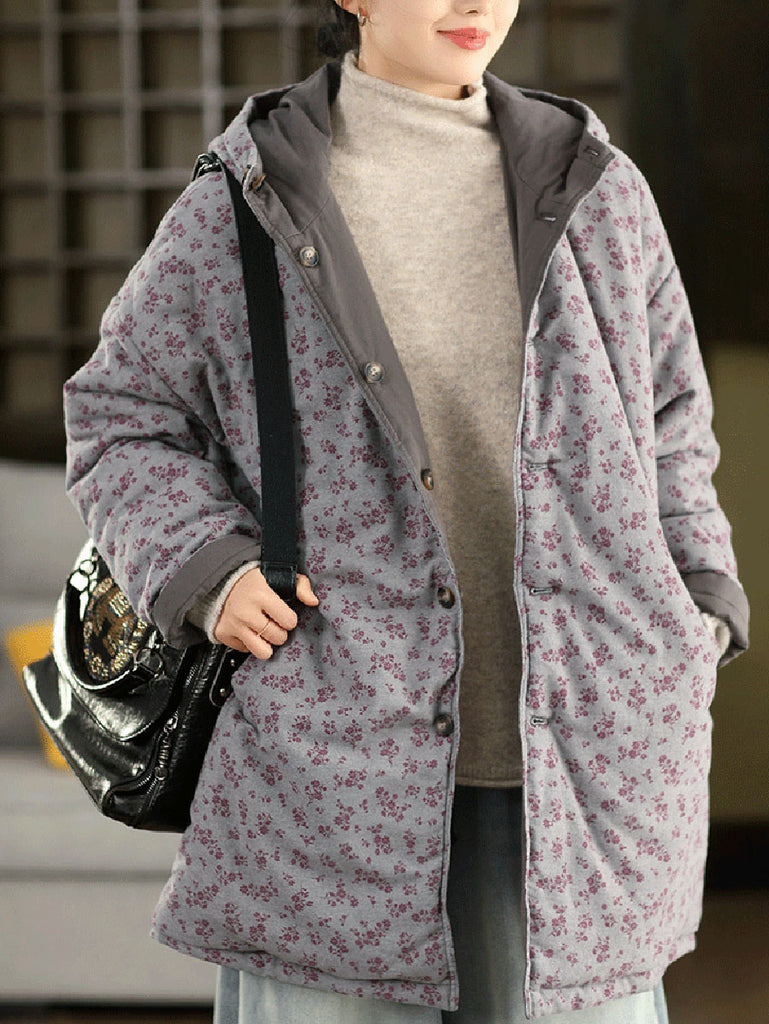 Dámský zimní oboustranný květinový kabát s kapucí ze 100% bavlny