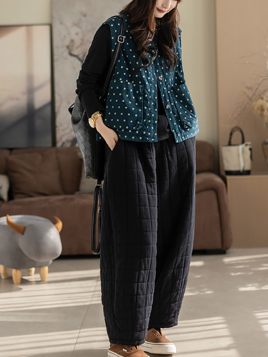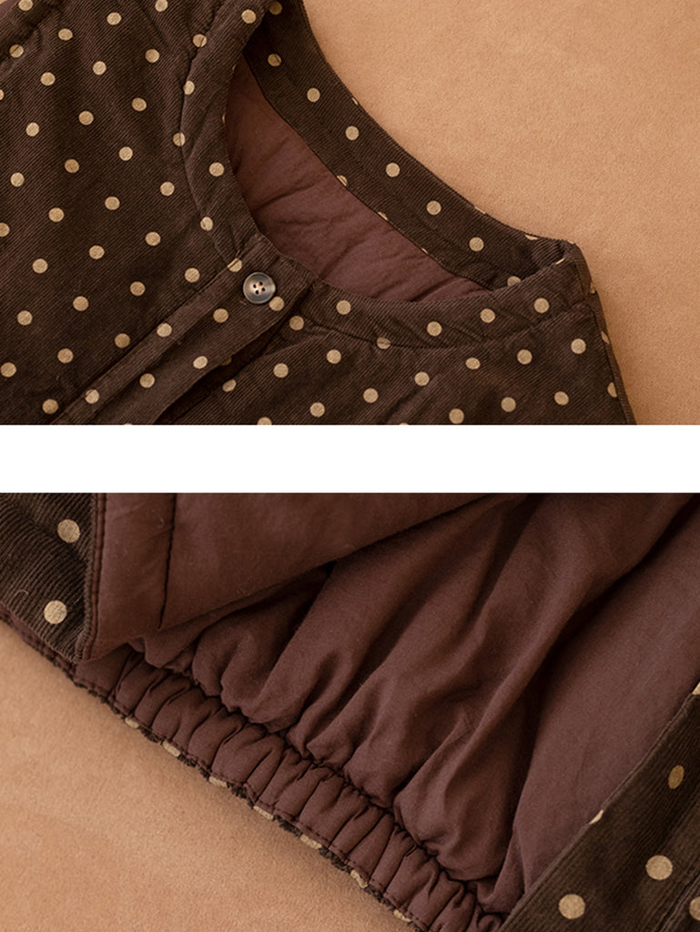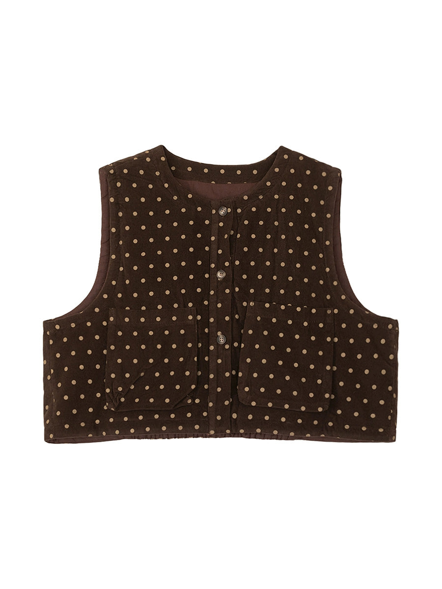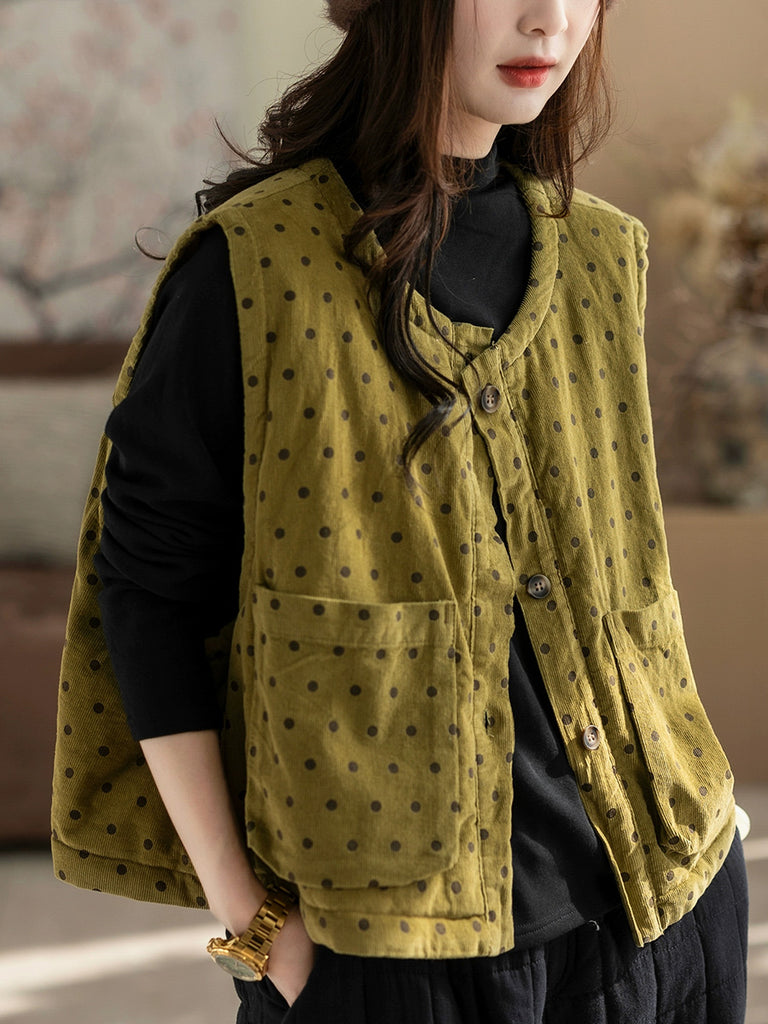 Dámská zimní vintage vesta s puntíky a výstřihem do O-neck