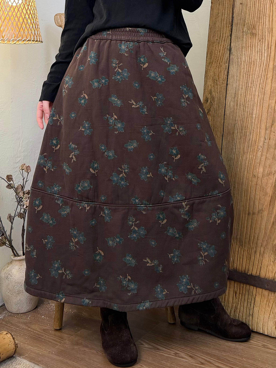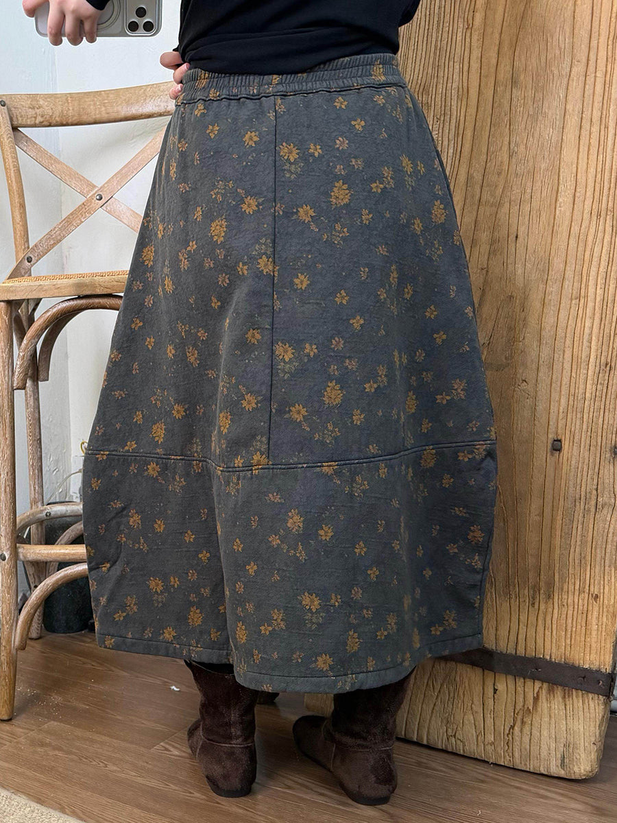 Dámská zimní vintage květinová bavlněná sukně s fleecovou podšívkou
