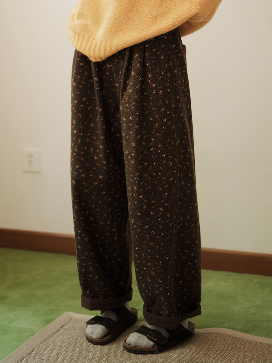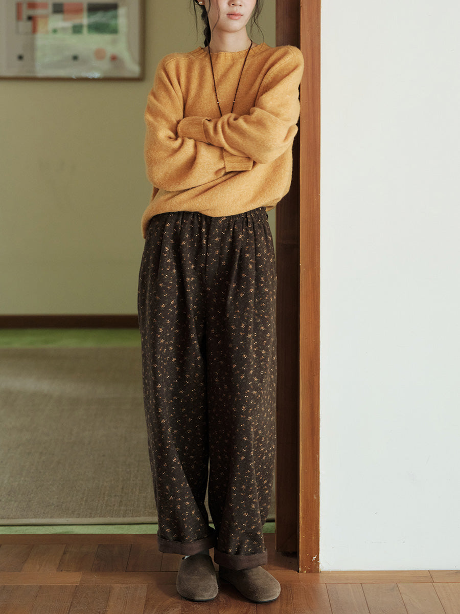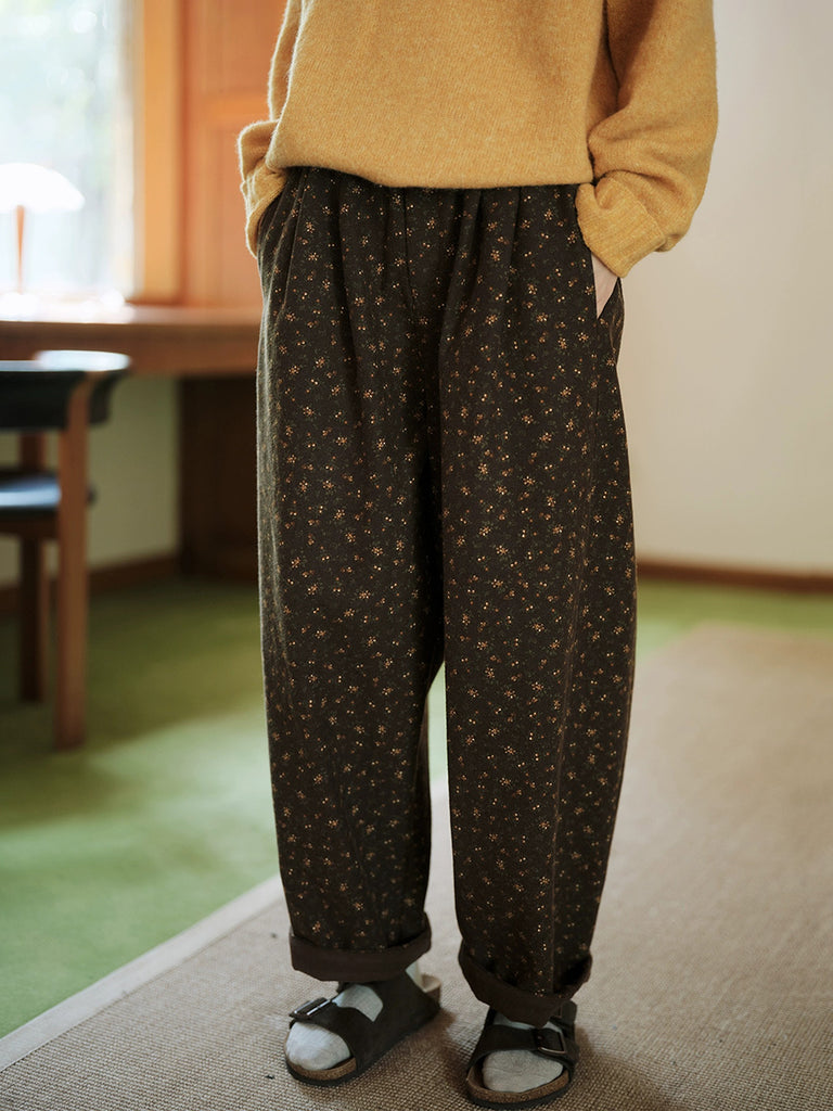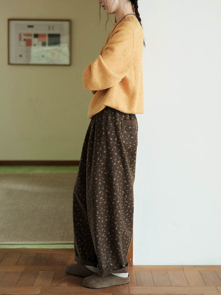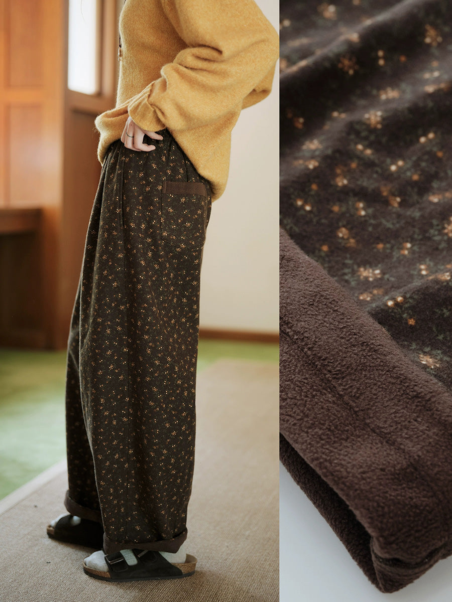 Dámské zimní vintage květinové harémové kalhoty s fleecovou podšívkou