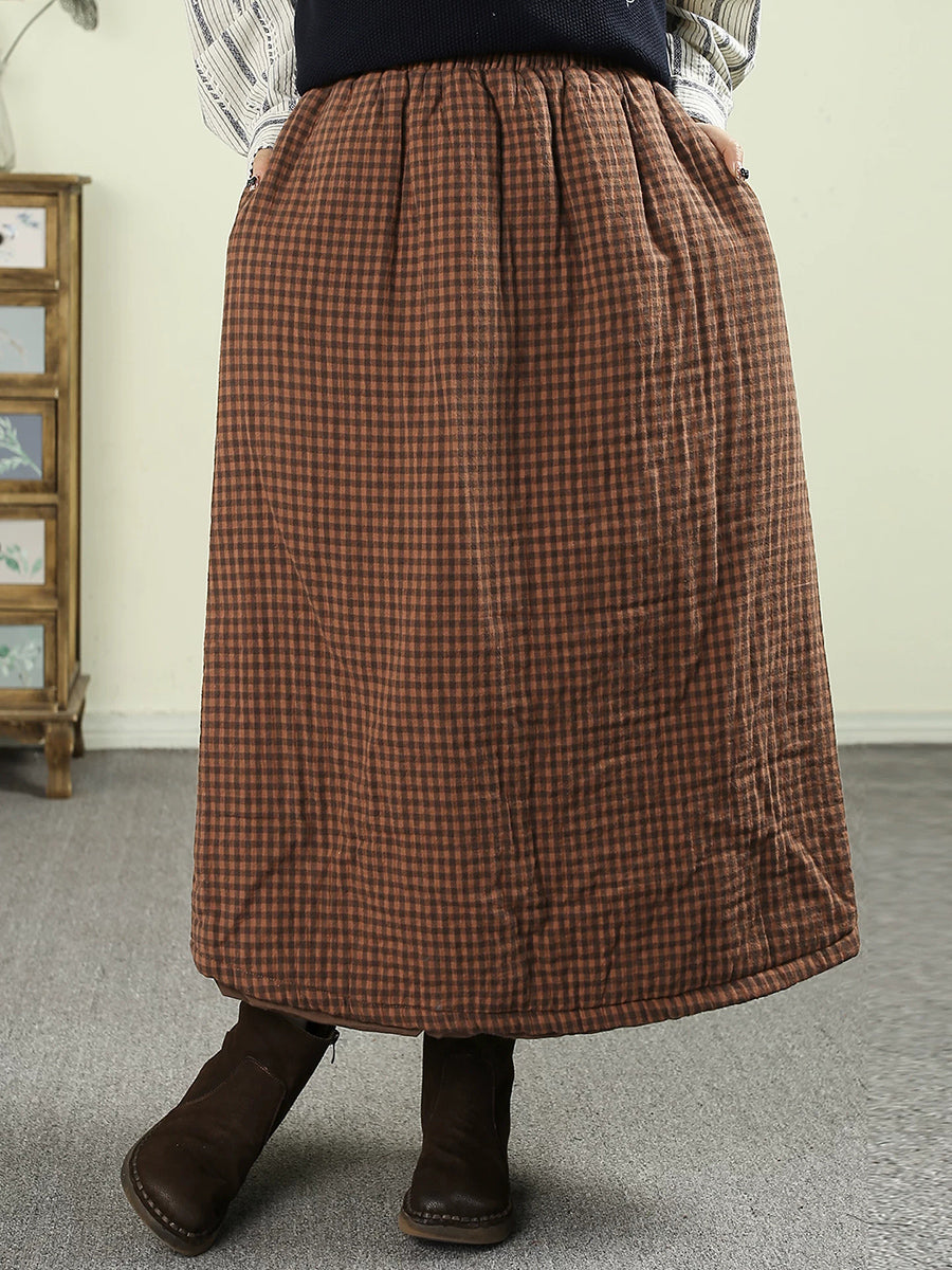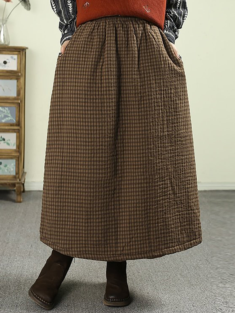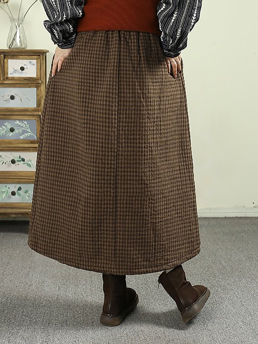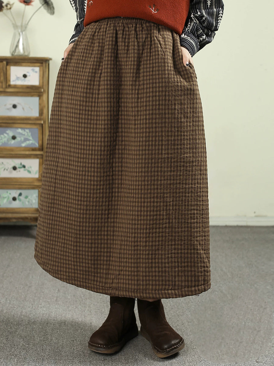 Dámská zimní vintage mřížkovaná sukně s prošíváním ze 100% bavlny