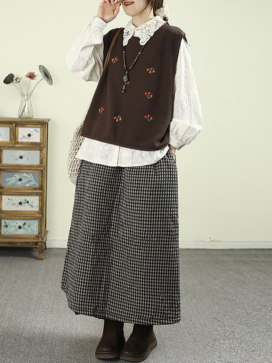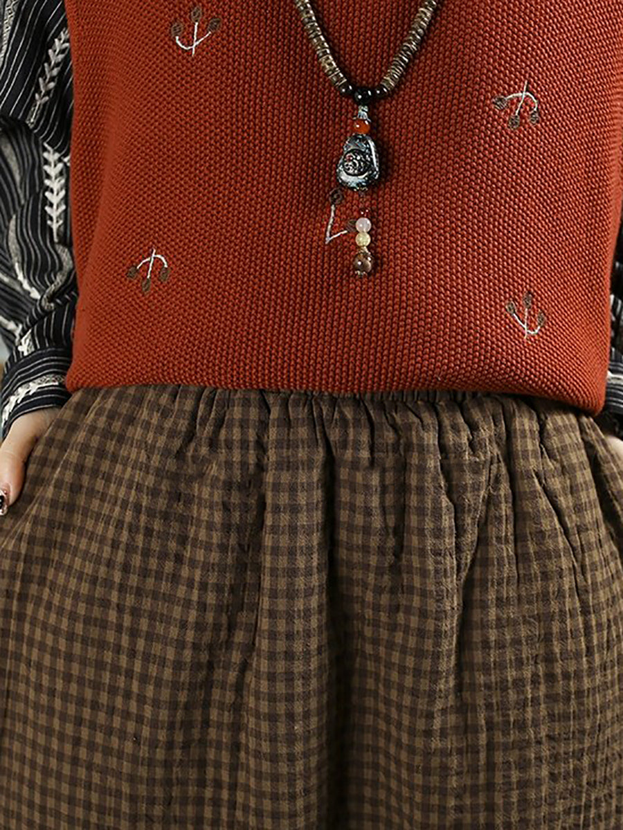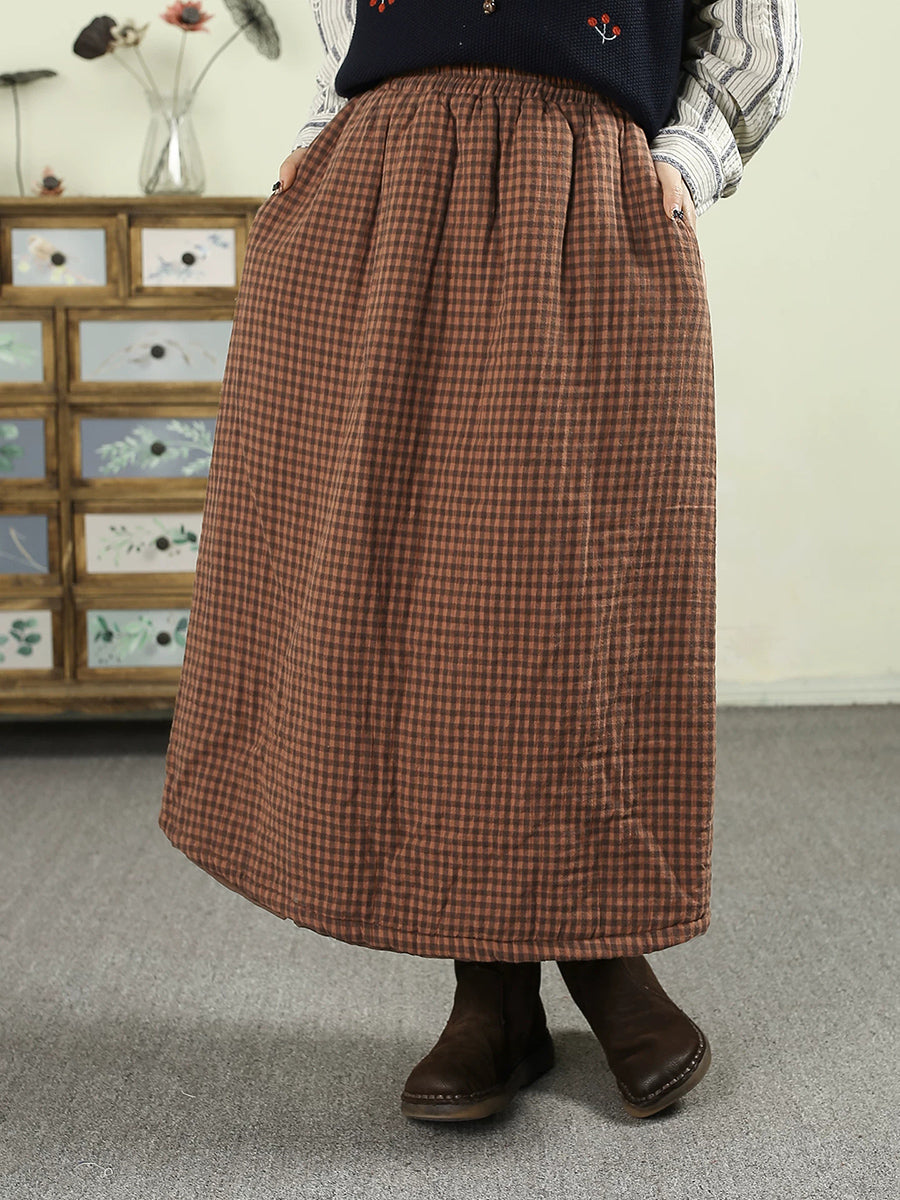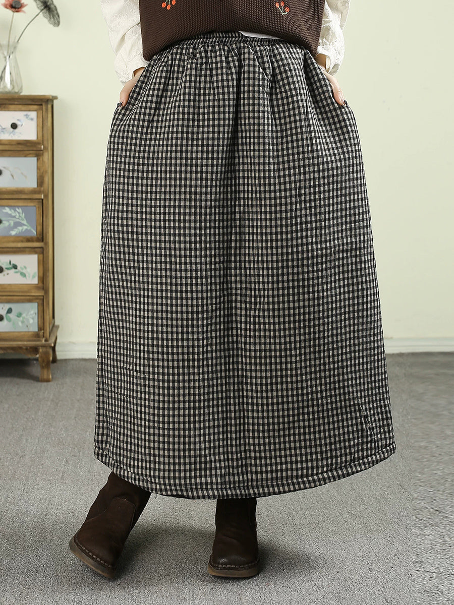 Dámská zimní vintage mřížkovaná sukně s prošíváním ze 100% bavlny