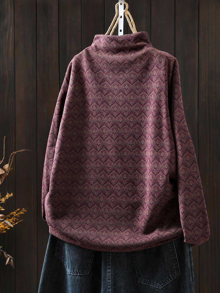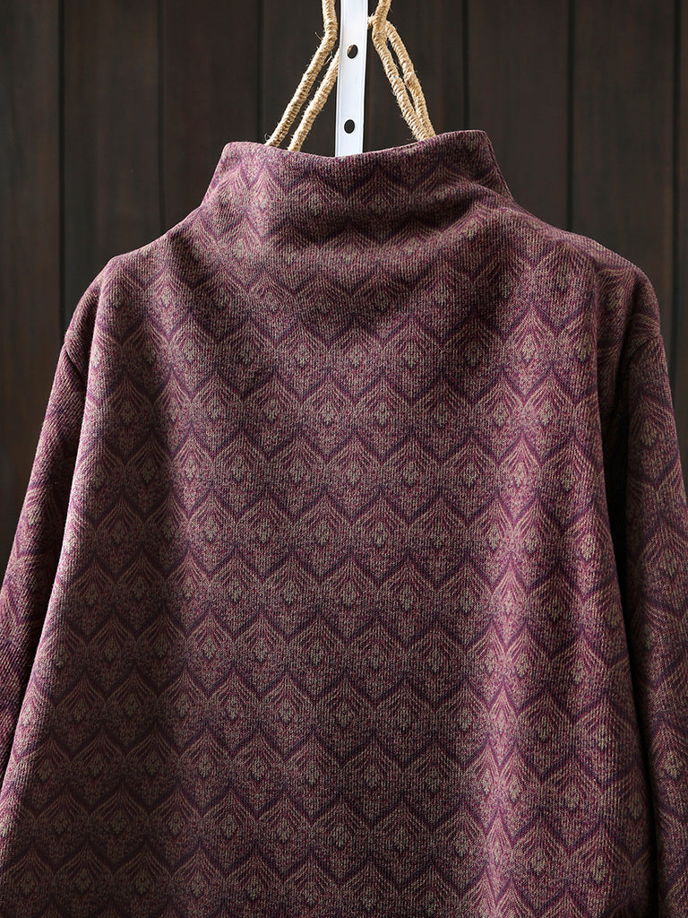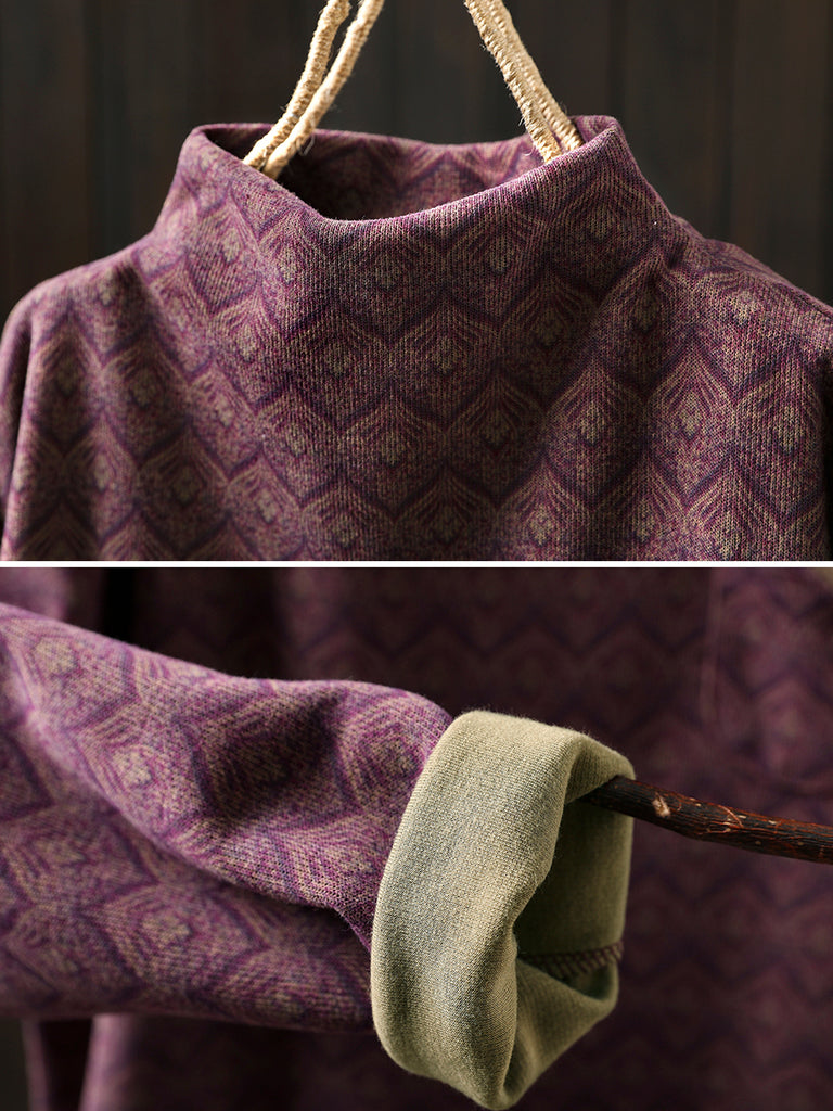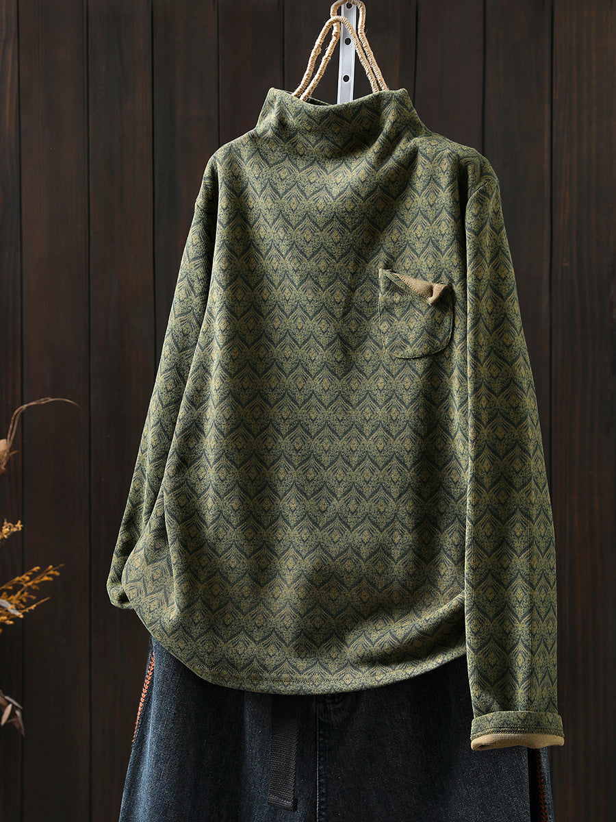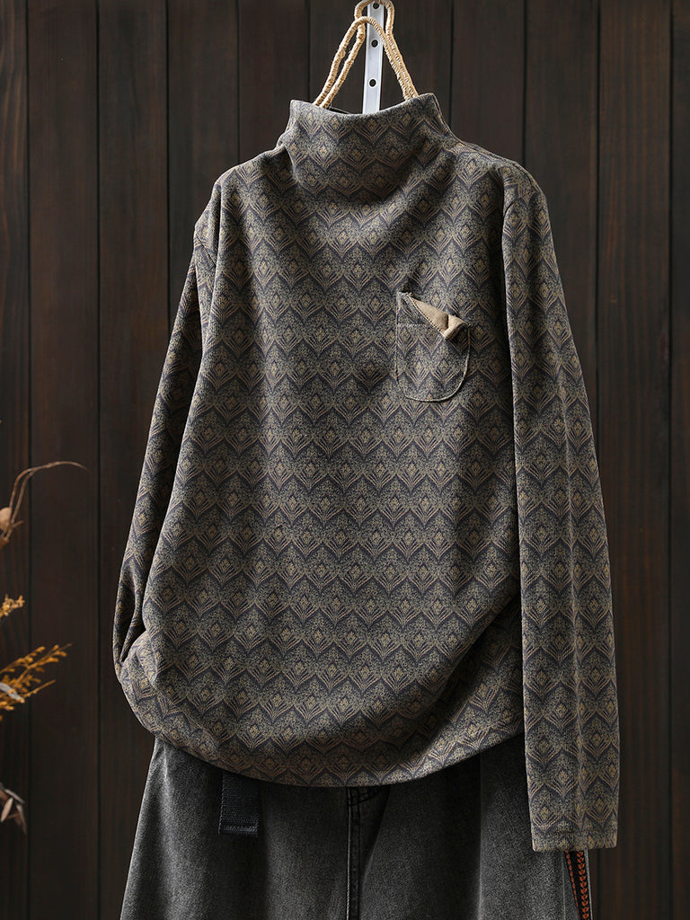 Dámská zimní halenka s vintage potiskem a rolákovým výstřihem