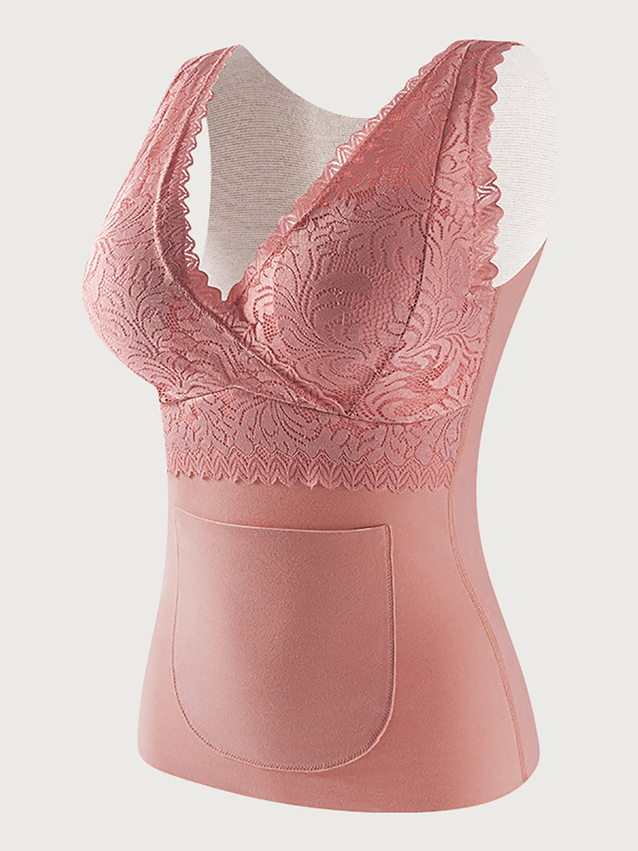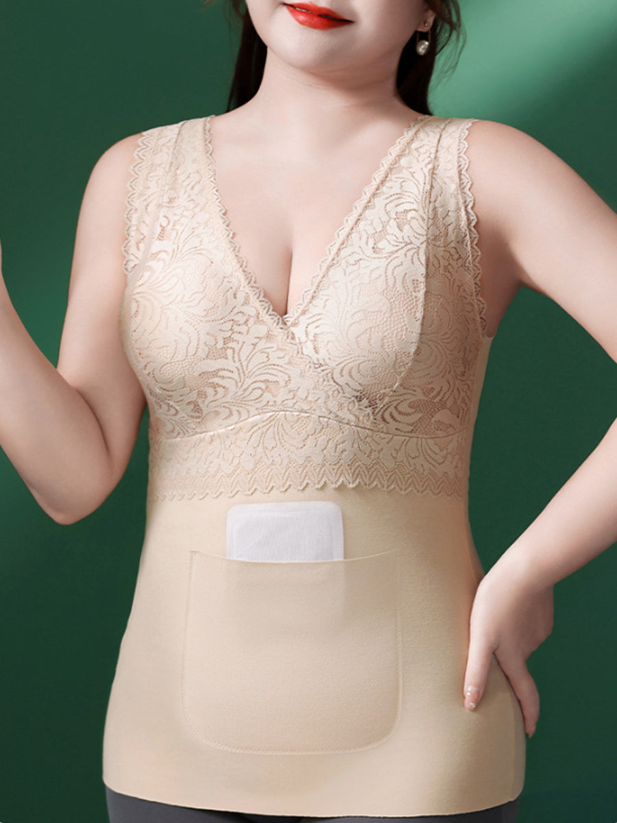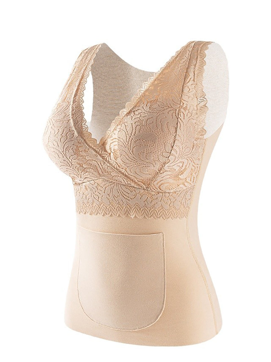 Dámská zimní teplá krajková vesta s podprsenkovými vložkami