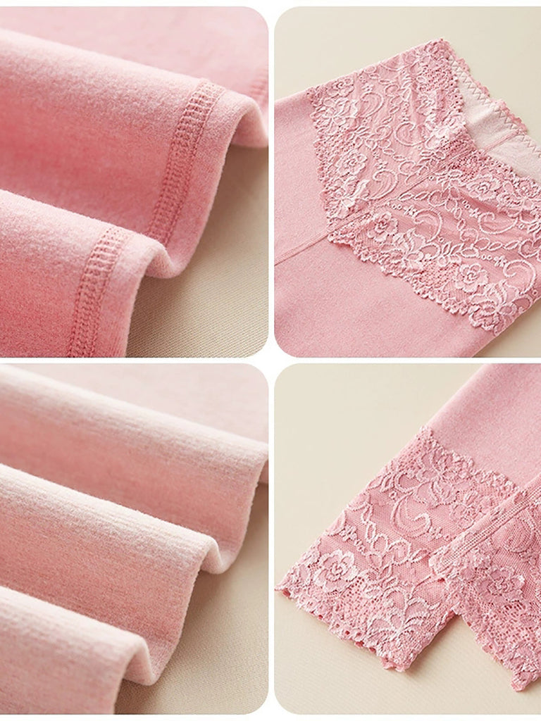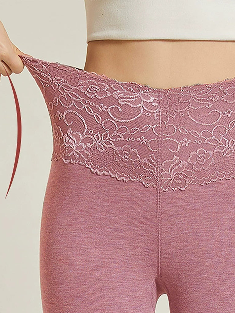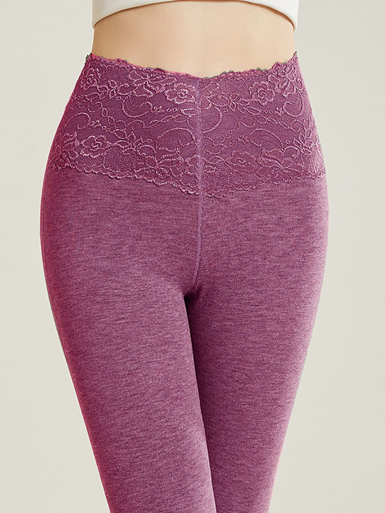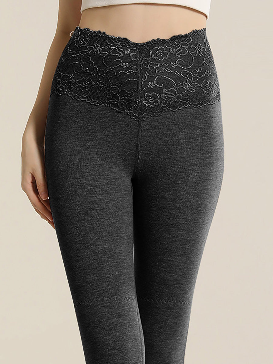 Dámské zimní teplé legíny s vysokým pasem a krajkou v čisté barvě